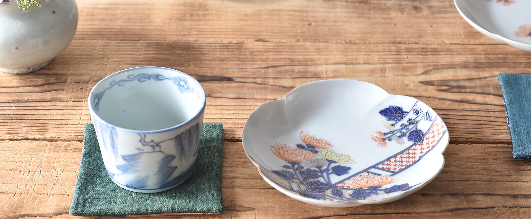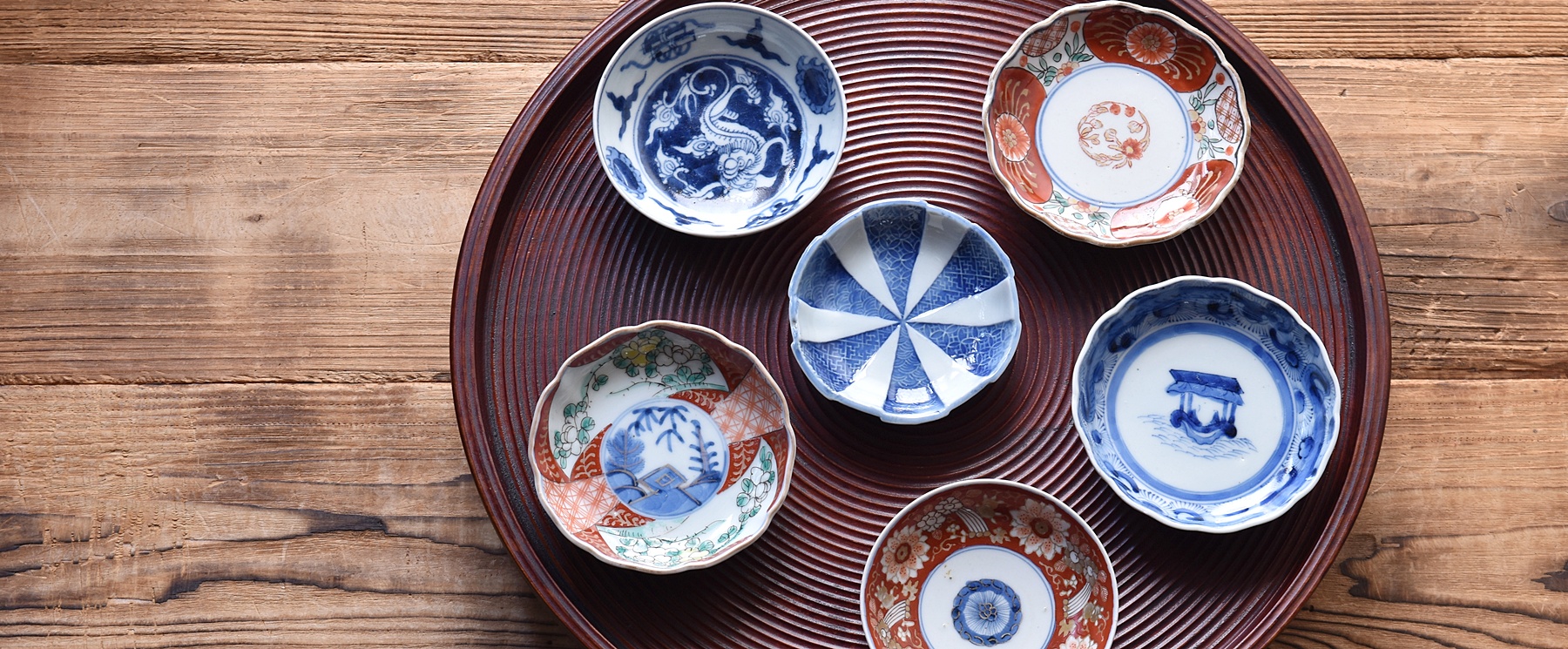 伊万里 色絵 赤絵 菊花 輪花型 小皿 豆皿