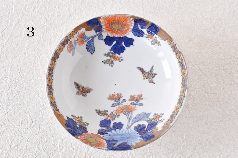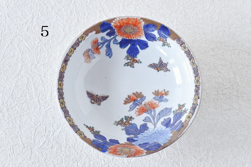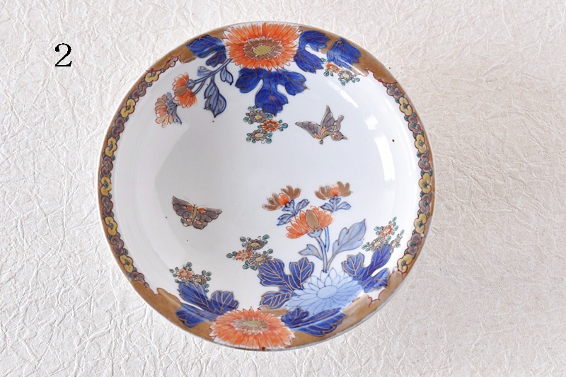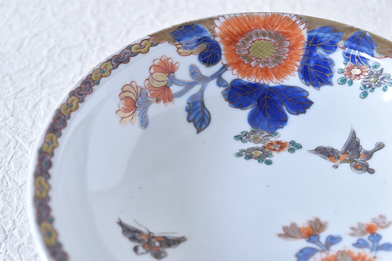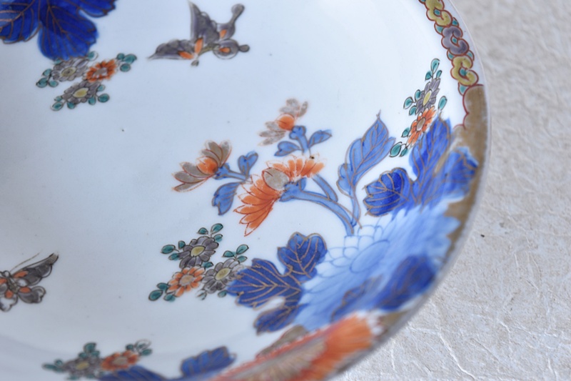 オールド深川 菊と蝶々 櫛高台 高足皿