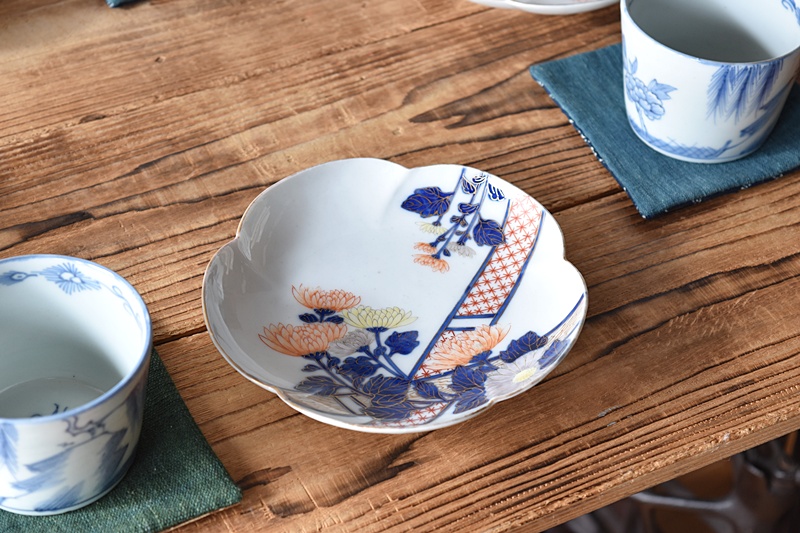 オールド香蘭社 色絵 菊花 花形皿