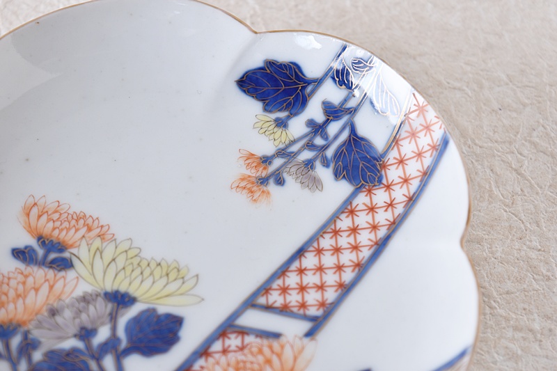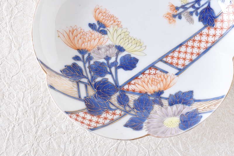 オールド香蘭社 色絵 菊花 花形皿
