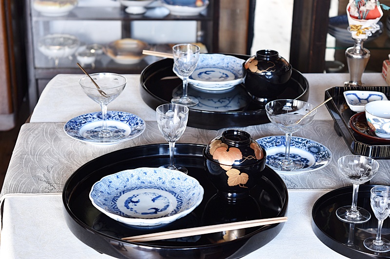 お膳にグラスがひとつ入るだけでテーブルがぐっと引き締まります。