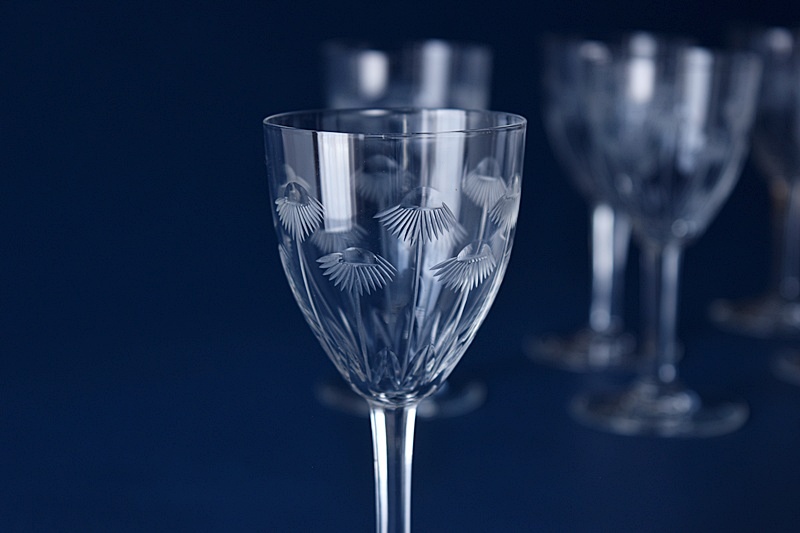 カットガラス タンポポ カモミール 小ぶりのワイングラス 食前酒グラス 6客セット
