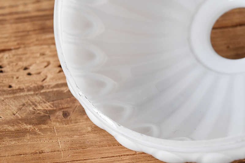 乳白にとろりと光った透明のガラスが手作りと時代を感じます。