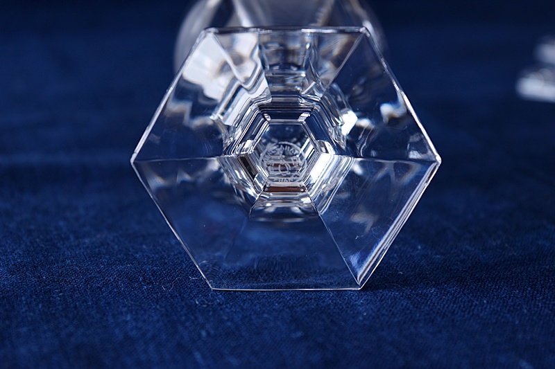 重厚感のあるカットと六角形のステムが特徴のアルクールのワイングラスです。
