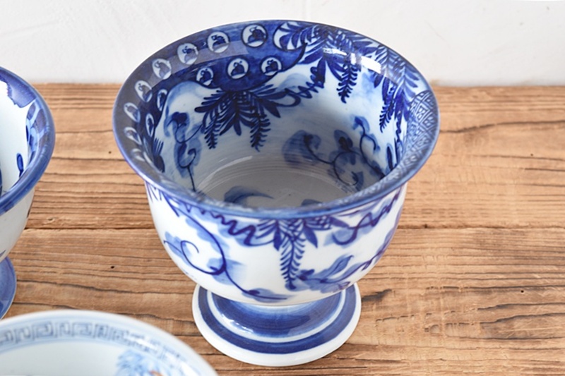 伊万里 染付 ベロ藍 羊歯蔓 盃洗