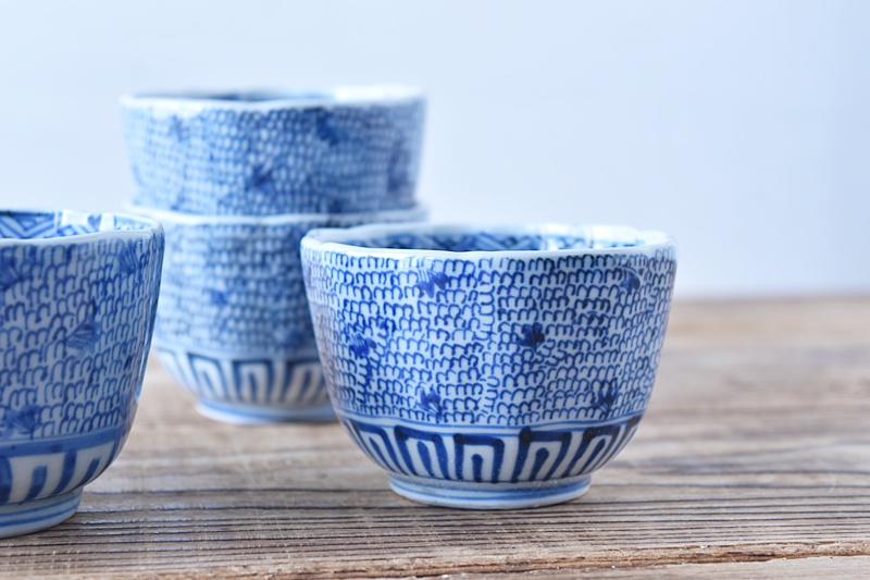 微塵唐草でも微妙に違います。手描きならではですね。こちらは3客セットとなります。