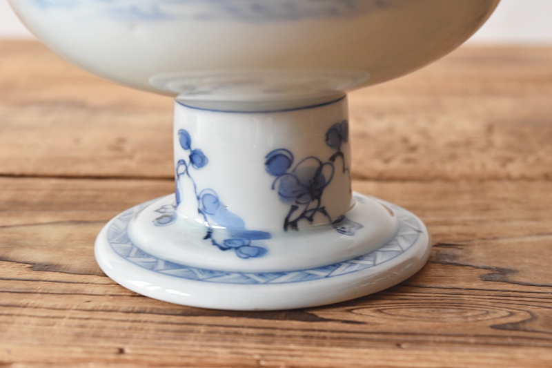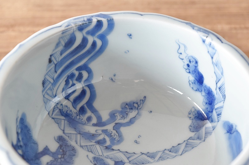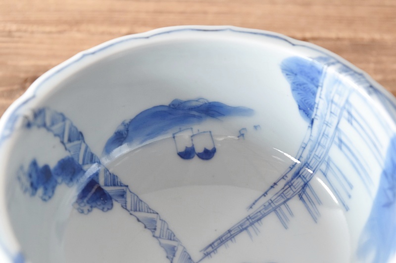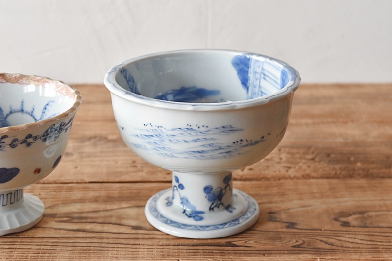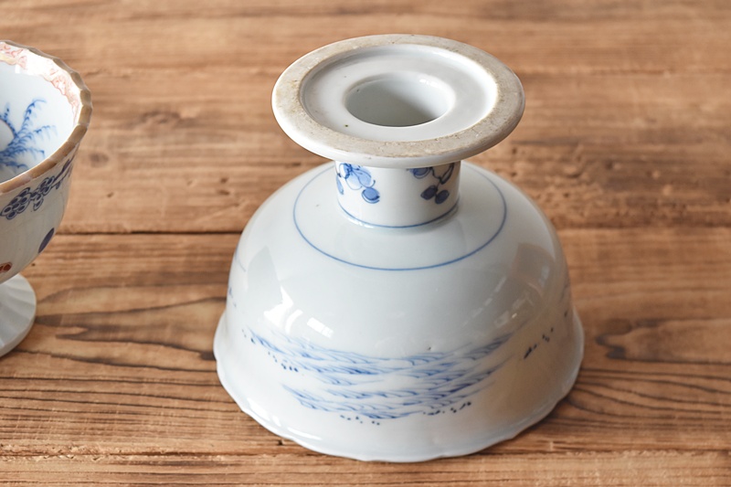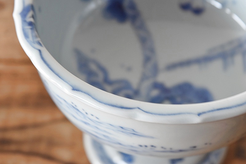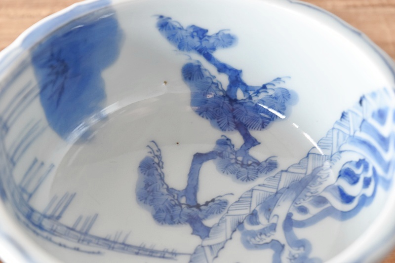 伊万里 染付 松に橋 梅模様 輪花型 盃洗