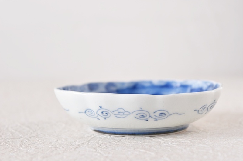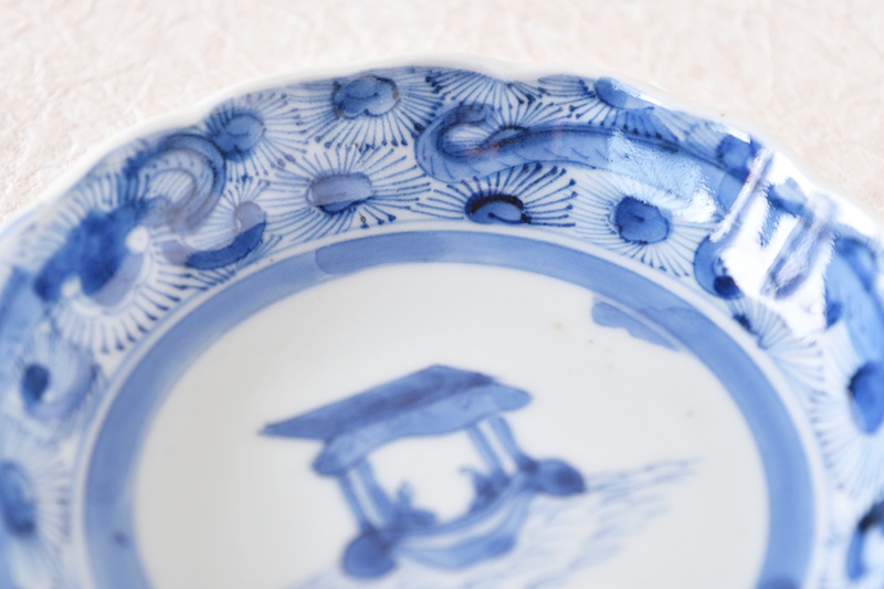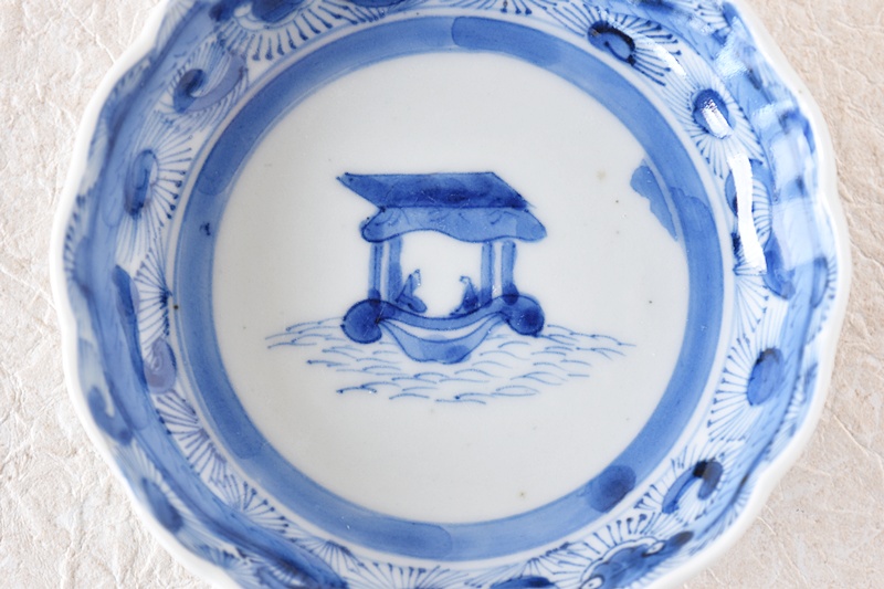 伊万里 染付 舟人物 龍の図 輪花型 小皿 豆皿 手塩皿