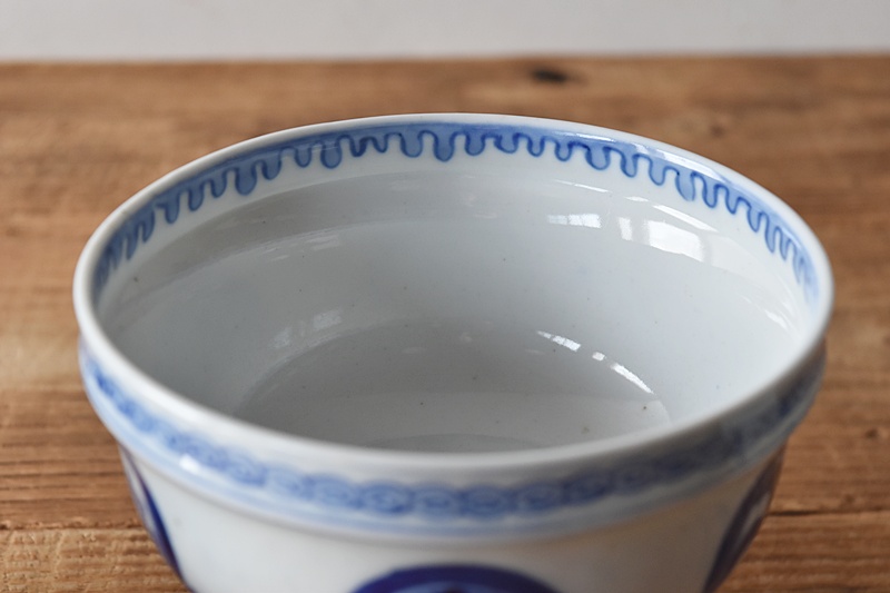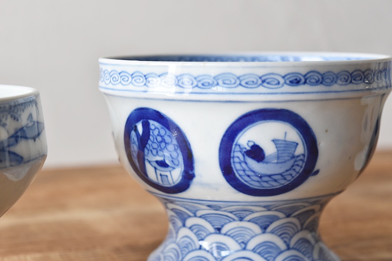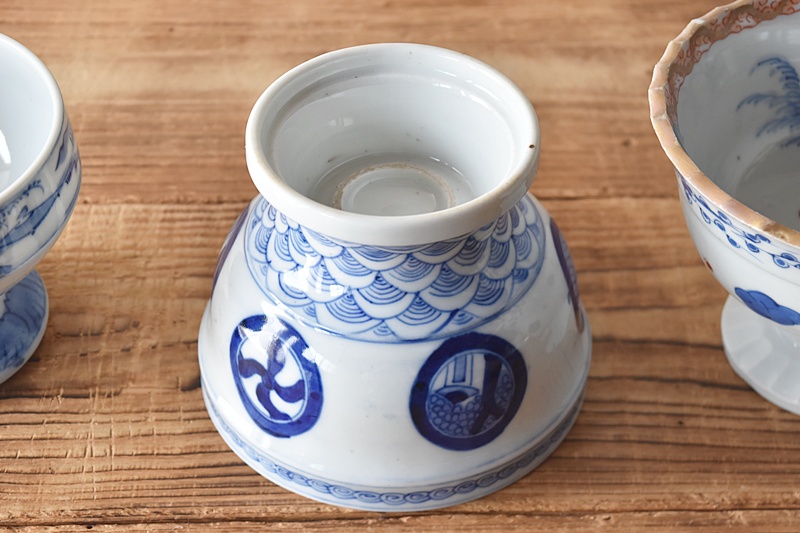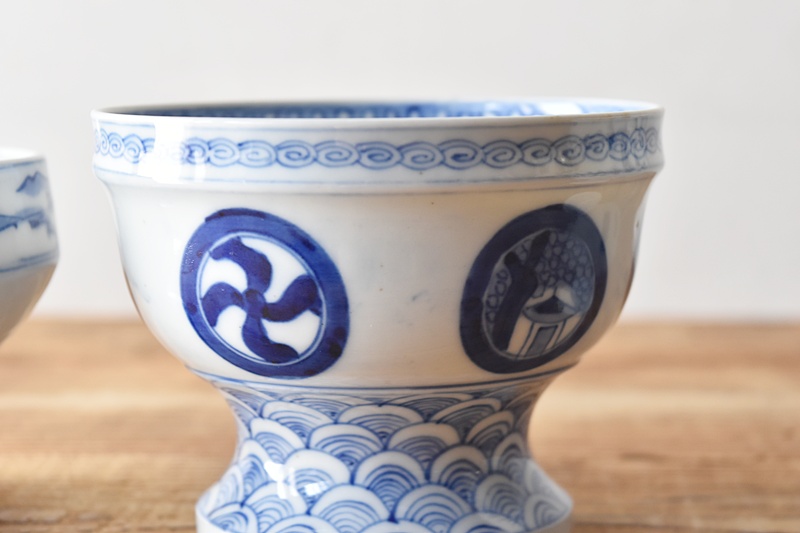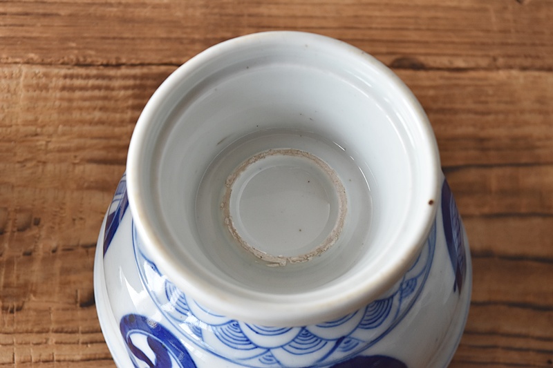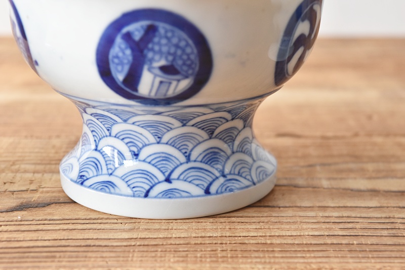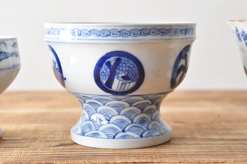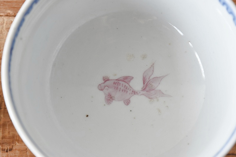 伊万里 染付 青海波に丸文 金魚 盃洗