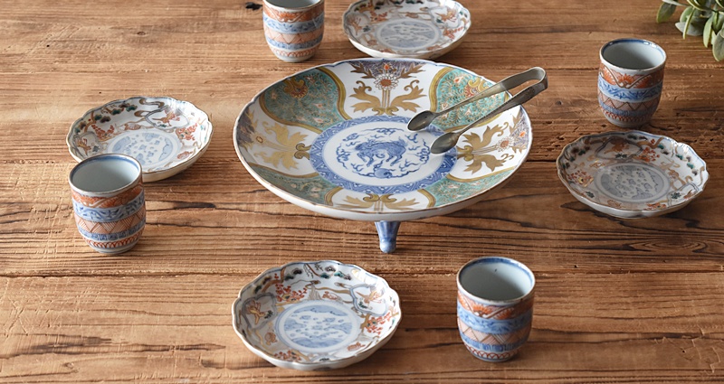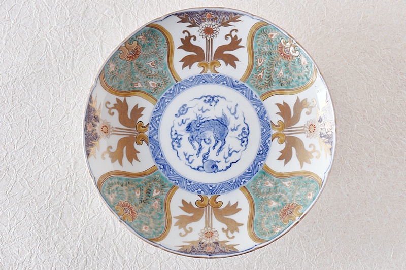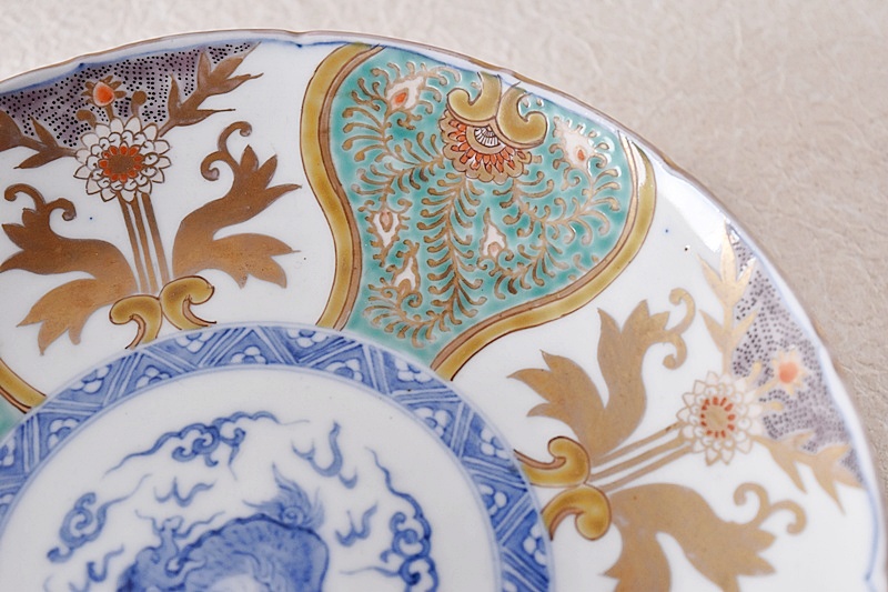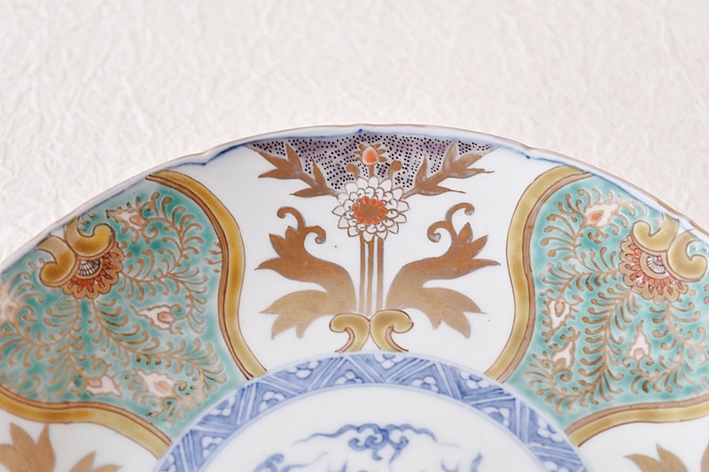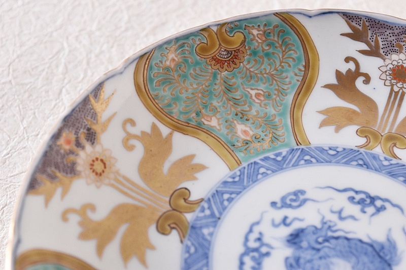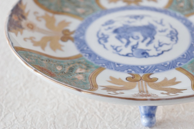 伊万里 色絵 グリーン金襴手 麒麟草花唐草 輪花型 足付コンポート皿Sold Out