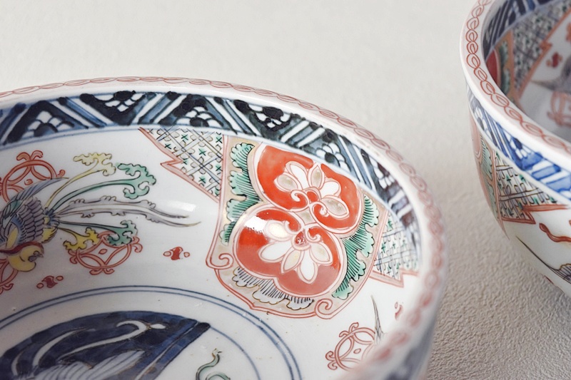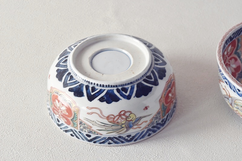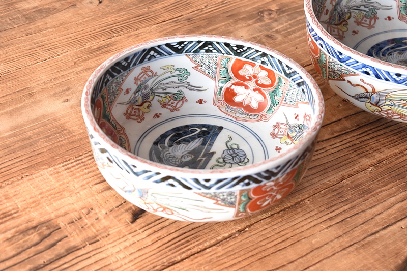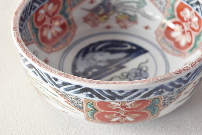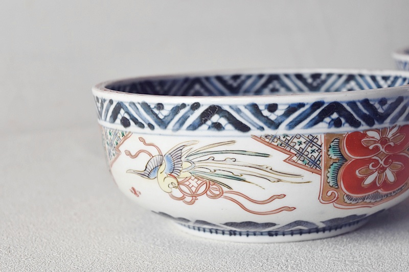 伊万里 色絵 七宝鳳凰 二重高台 鉢 小
