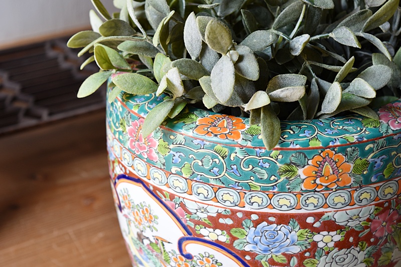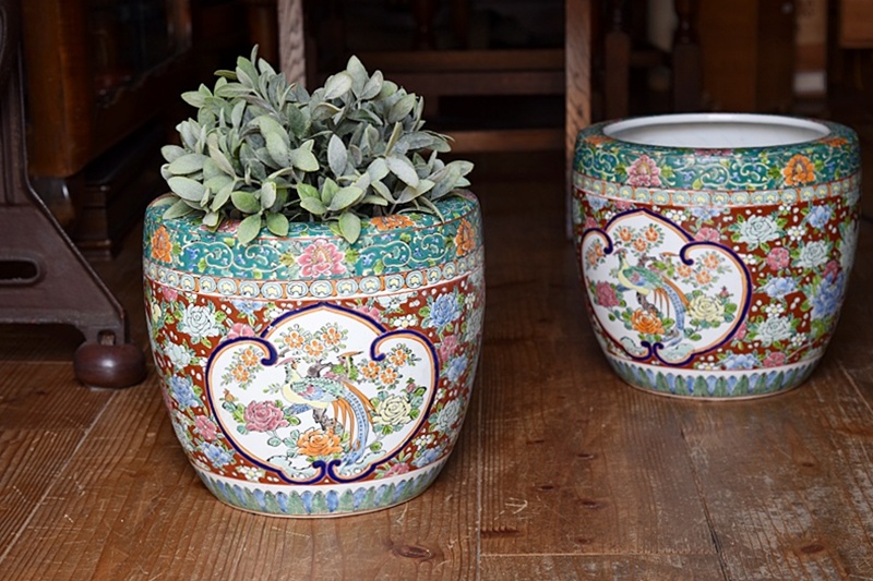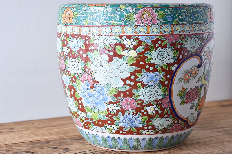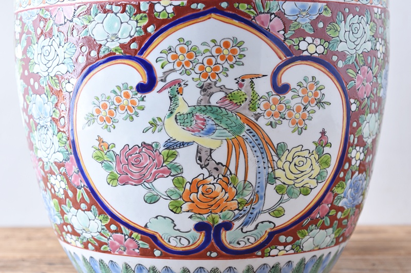 伊万里 色絵 十錦手 薔薇と孔雀 火鉢Sold Out