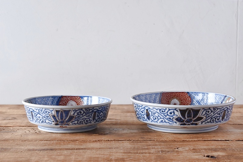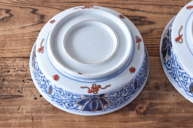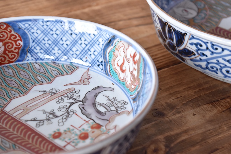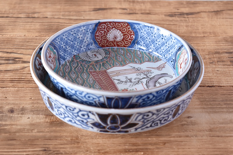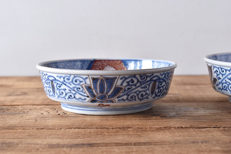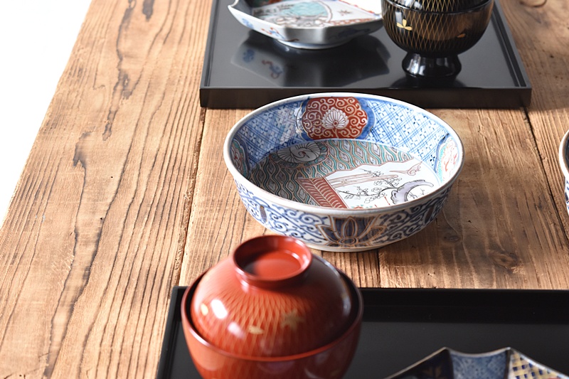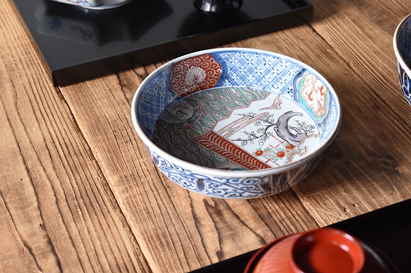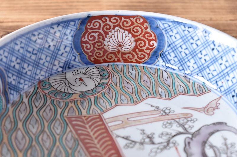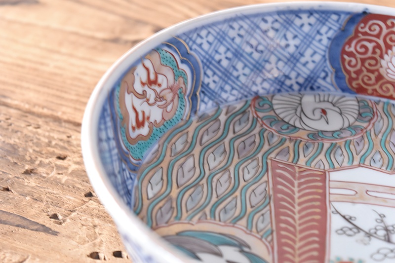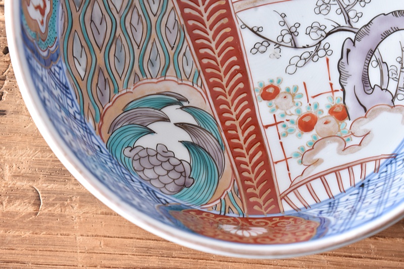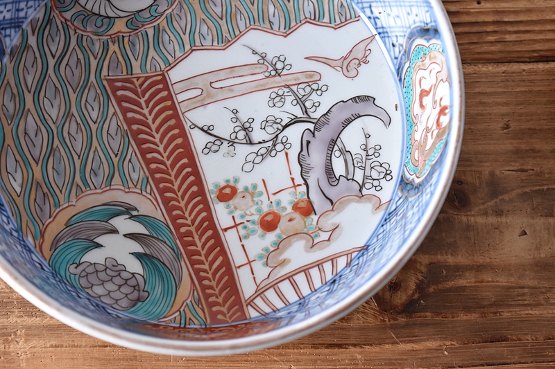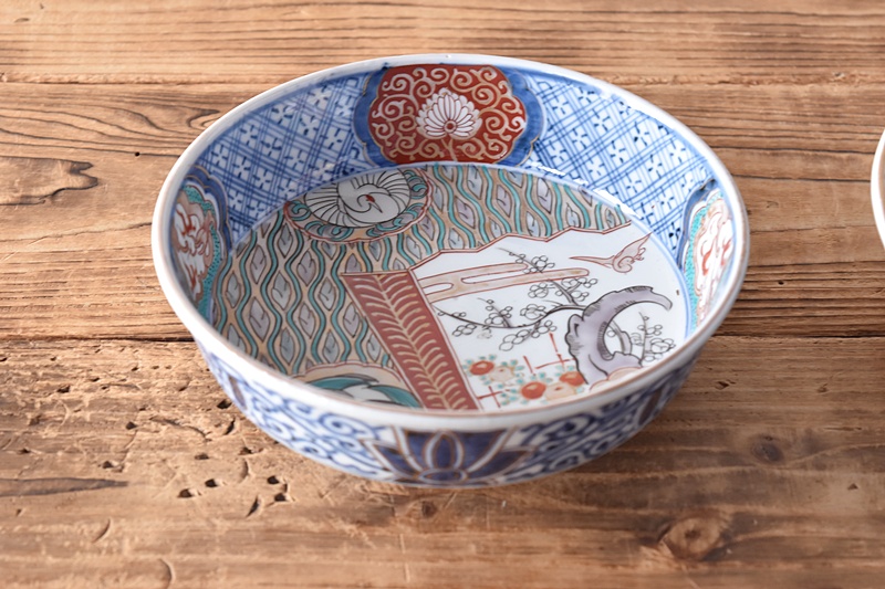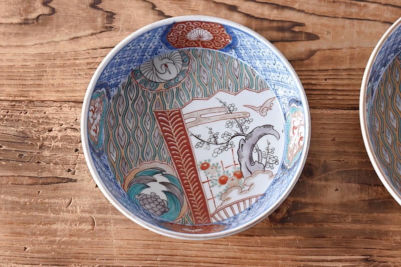 伊万里 色絵 扇面に梅菊鳥 鶴亀龍よろけ模様 鉢 小Sold Out