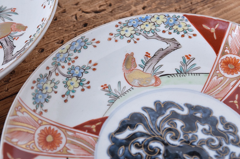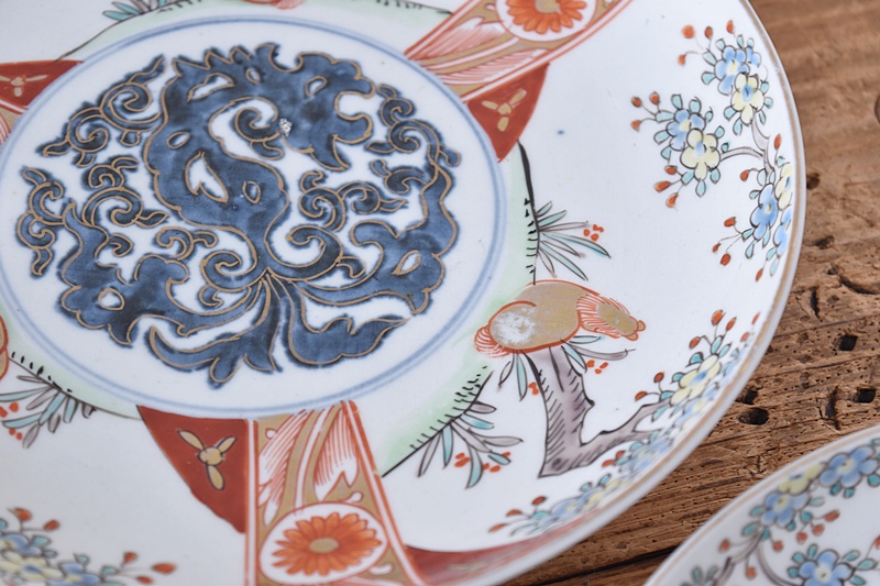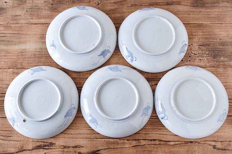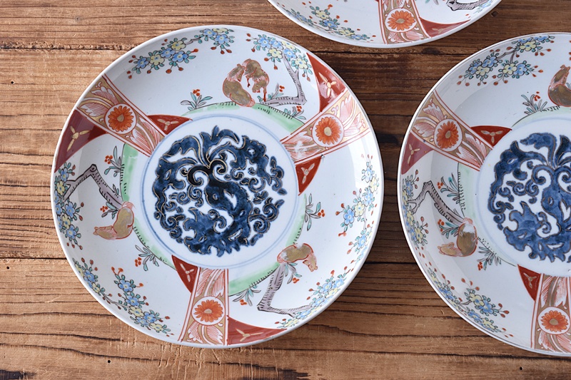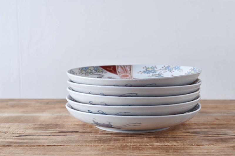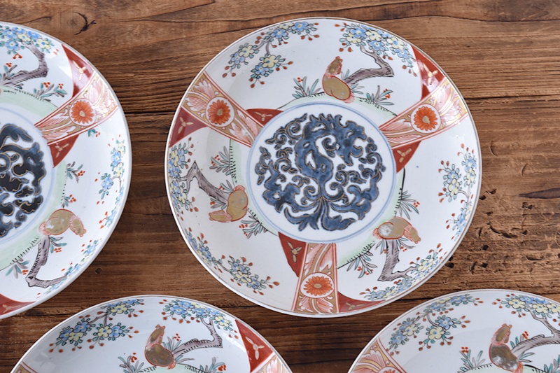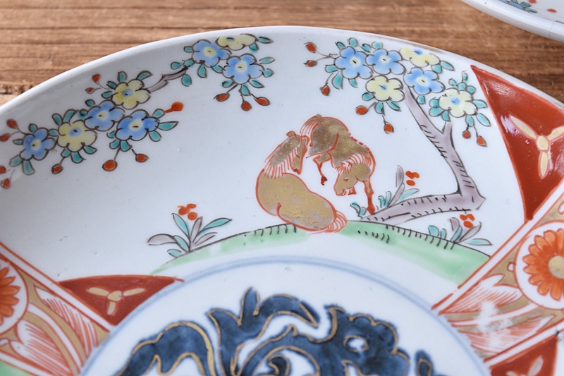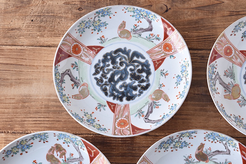 伊万里 色絵 桜と馬 七寸皿 5客セット