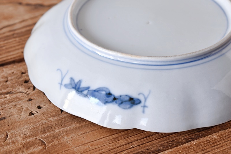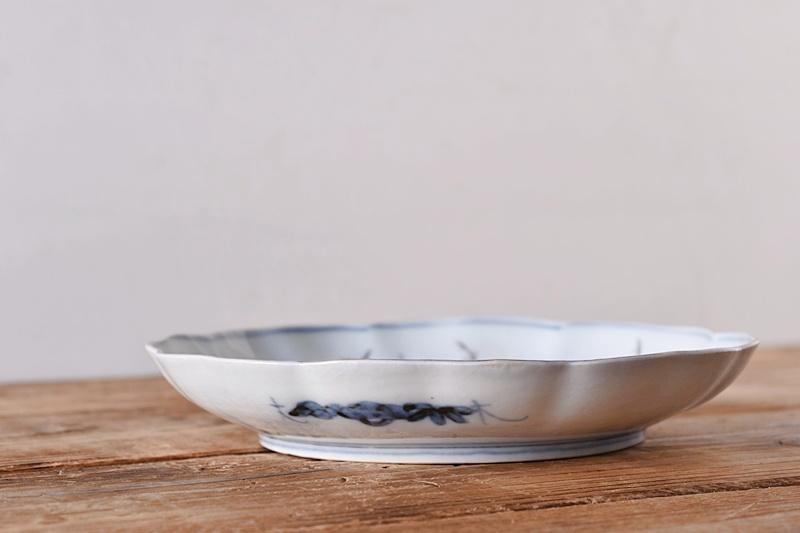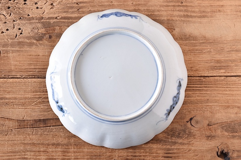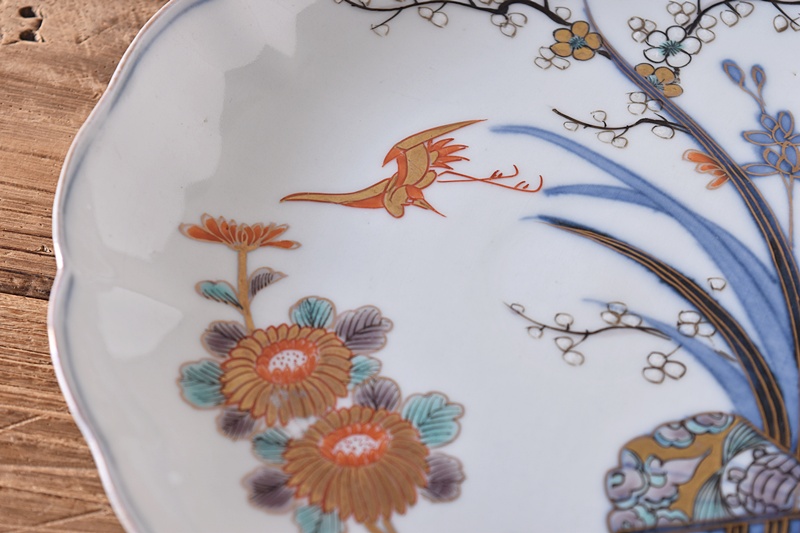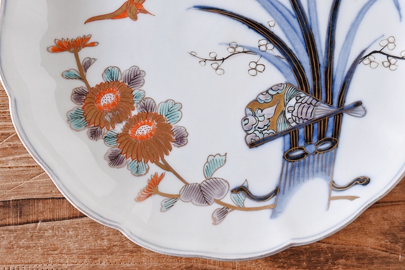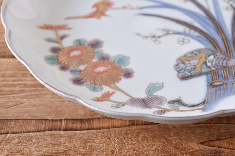 伊万里 色絵 梅に水仙と菊 鶴亀 扇面に亀 輪花型 七寸皿Sold Out