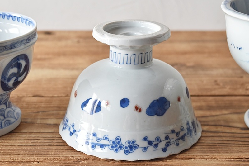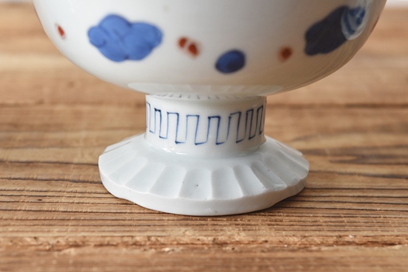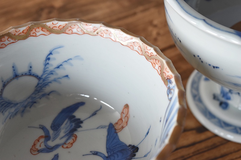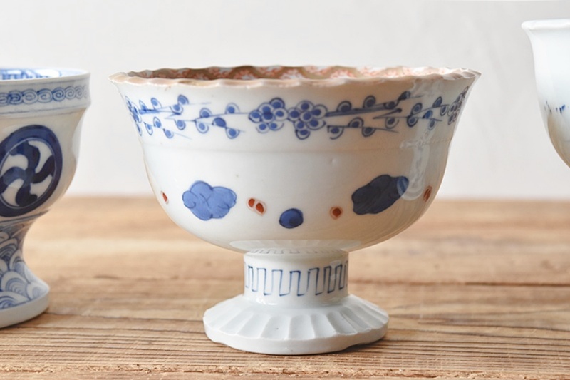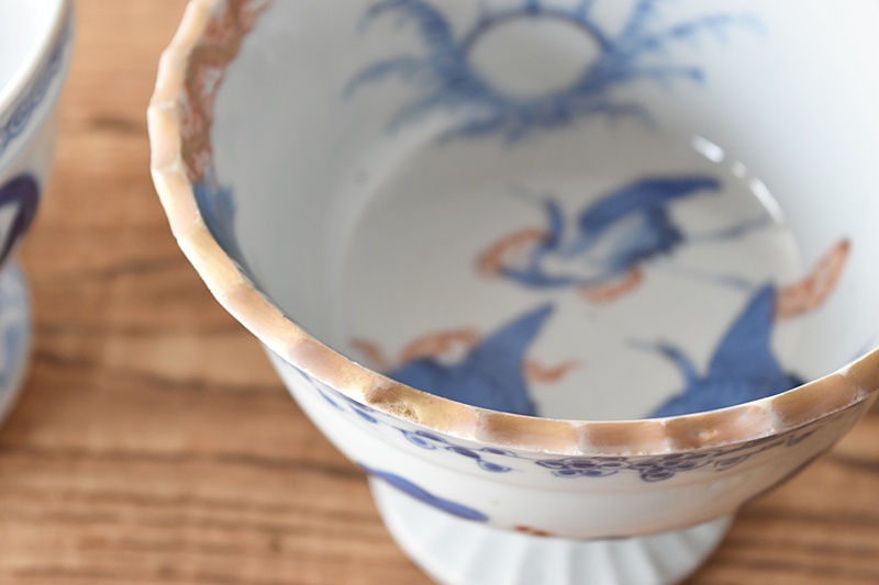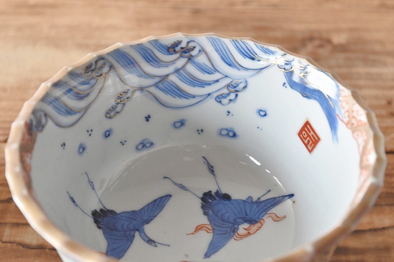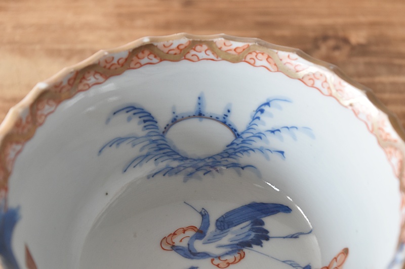 伊万里 色絵 波に鶴 日の出 梅模様 盃洗