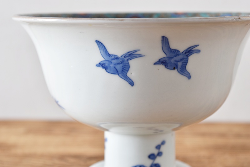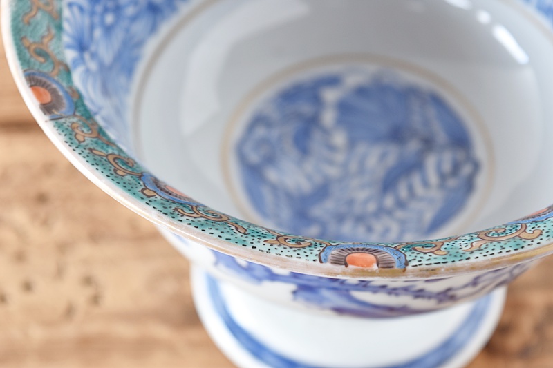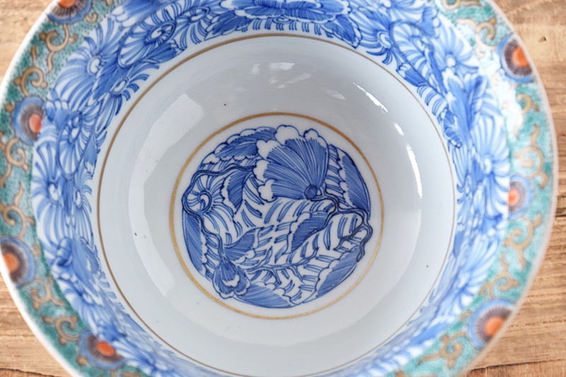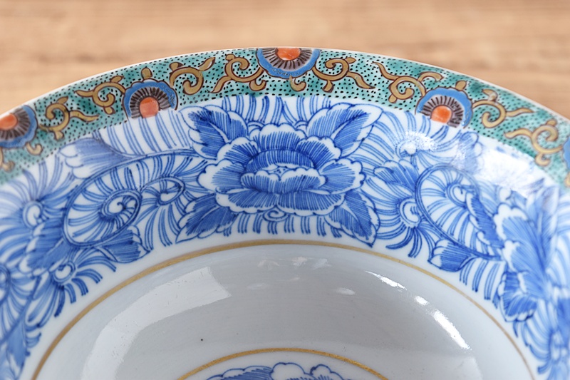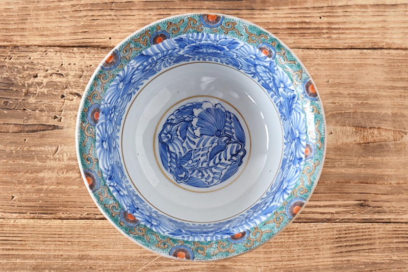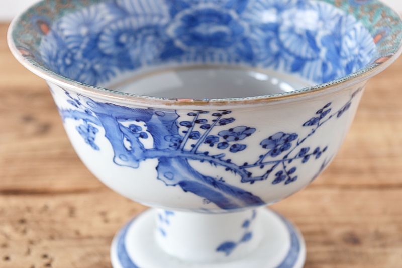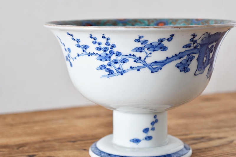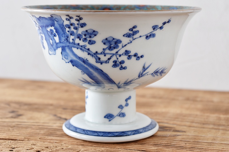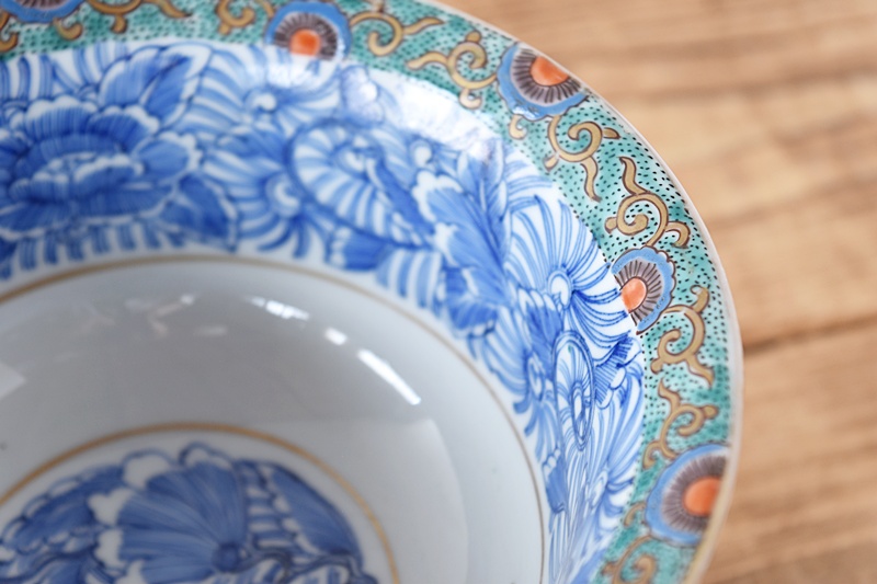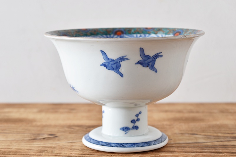 伊万里 色絵 線描き 花と唐草 梅鳥 盃洗