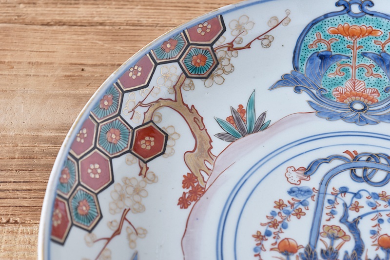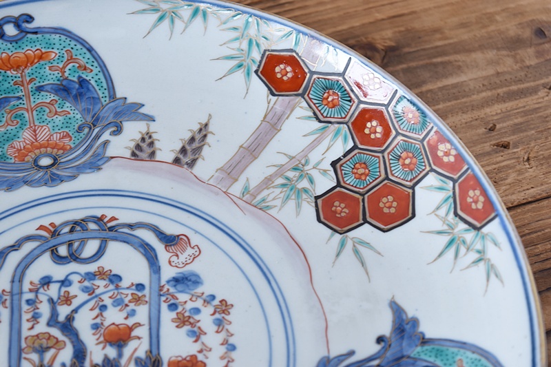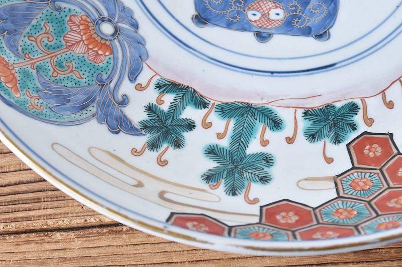 伊万里 色絵 花籠に牡丹と枝垂れ桜 松竹梅 尺皿