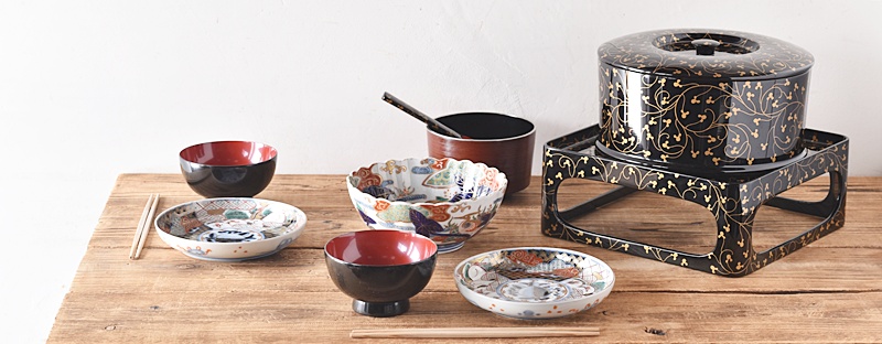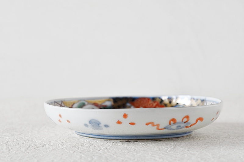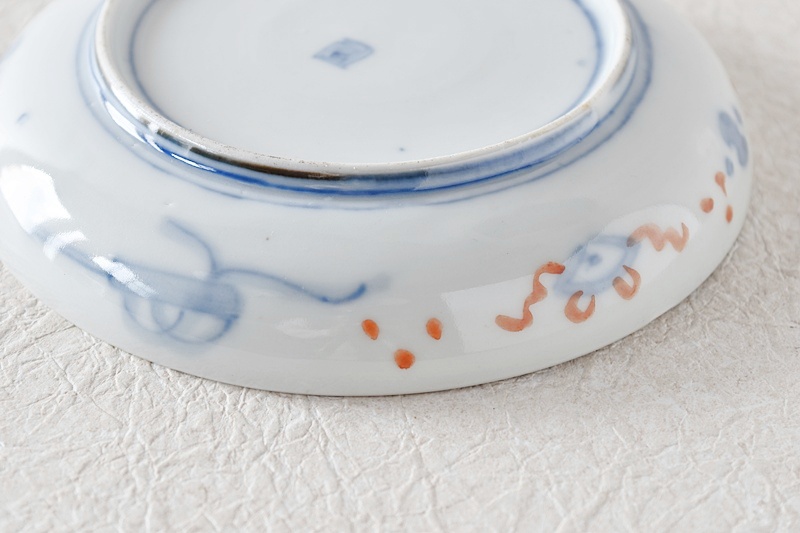 伊万里 色絵 鶴松 柘榴 5.5寸皿