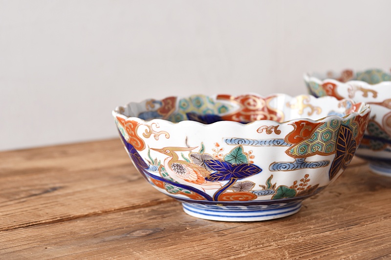 伊万里 色絵 鷺と沢潟 輪花型 三つ鉢 小Sold Out