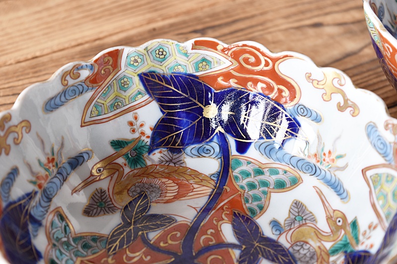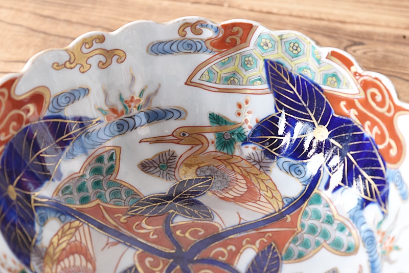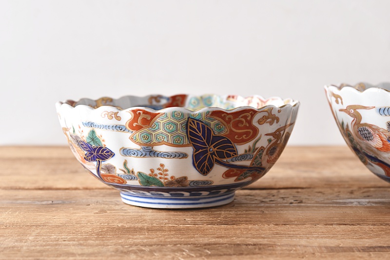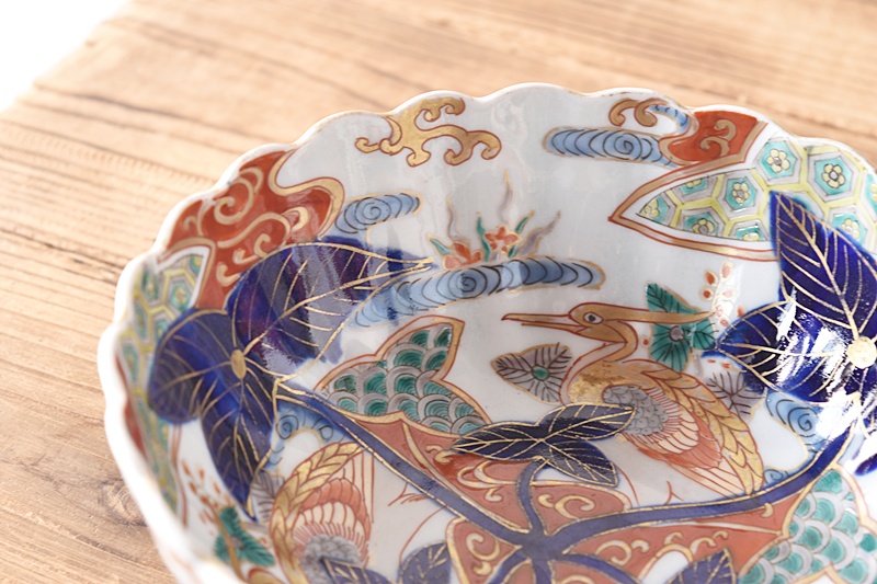 伊万里 色絵 鷺と沢潟 輪花型 三つ鉢 小Sold Out
