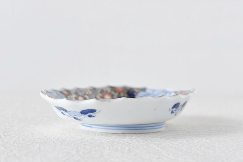 縁には金彩色絵で小菊が描かれ、お料理をのせるとちょうど良い華やかさのように思います。