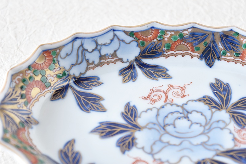 伊万里 通り物 染錦 色絵 牡丹小菊 冨貴長春 イゲ型 楕円皿