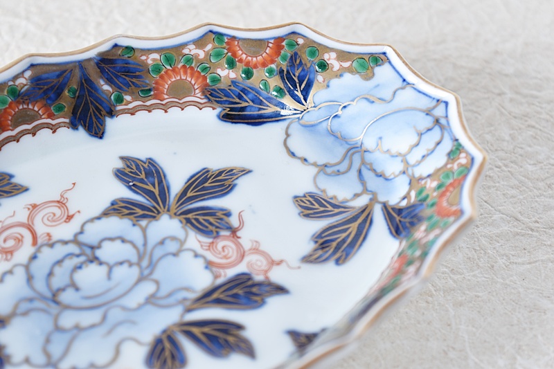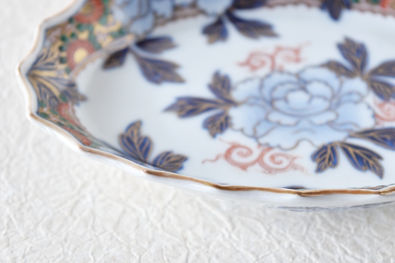 縁には金彩色絵で小菊が描かれ、お料理をのせるとちょうど良い華やかさのように思います。