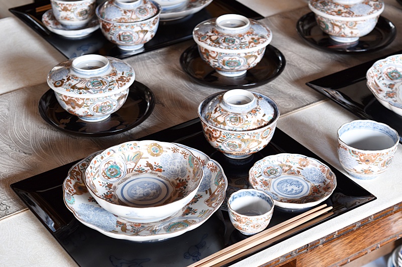 赤みの少ない金襴手の器たちです。