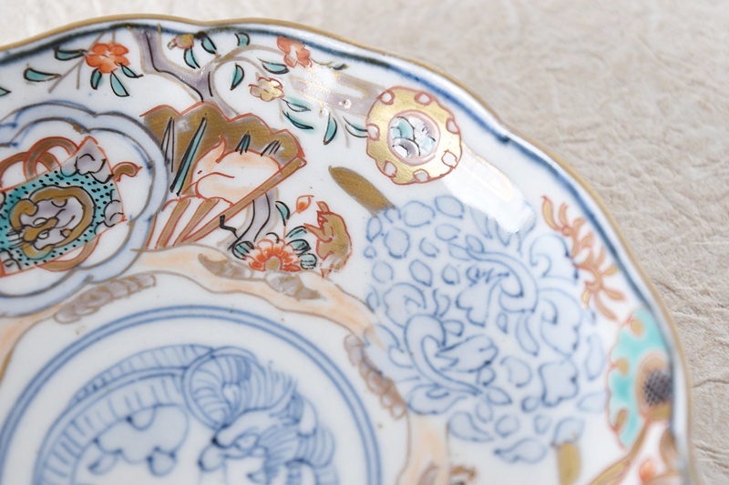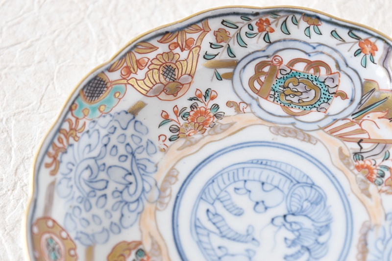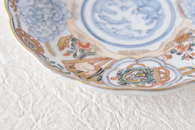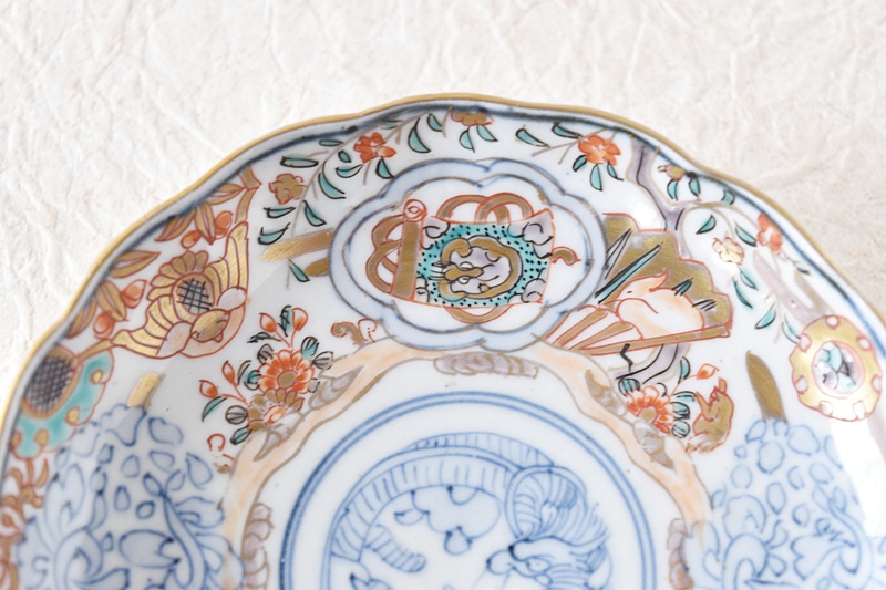 伊万里 金蘭手 色絵 龍鷺鳳凰 草花模様 輪花型 小皿 通り物Sold Out