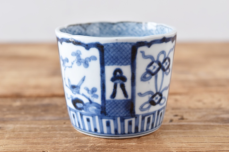 古伊万里 染付 七宝熨斗花鳥 蕎麦猪口 江戸中期Sold Out