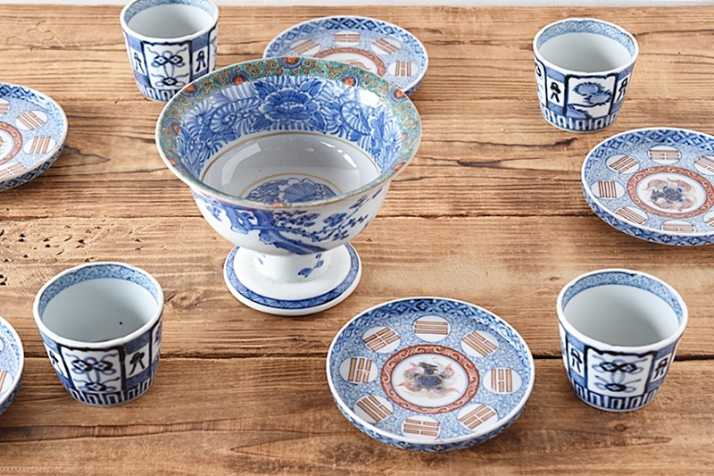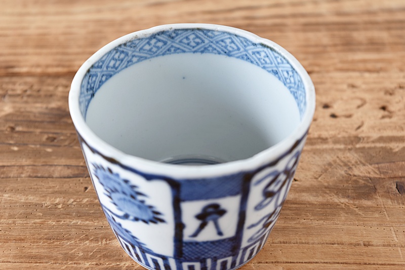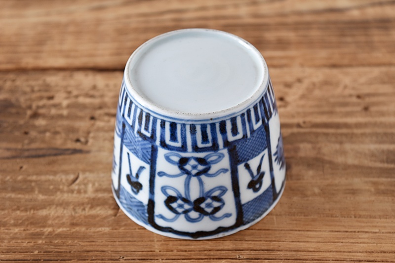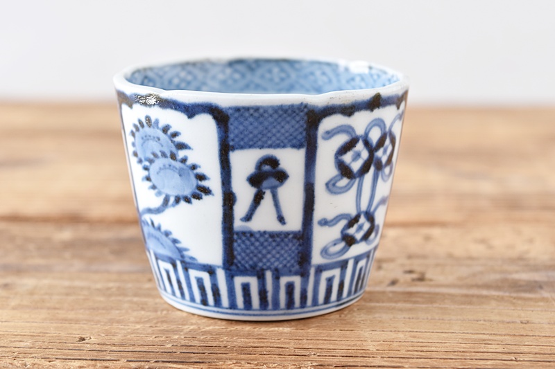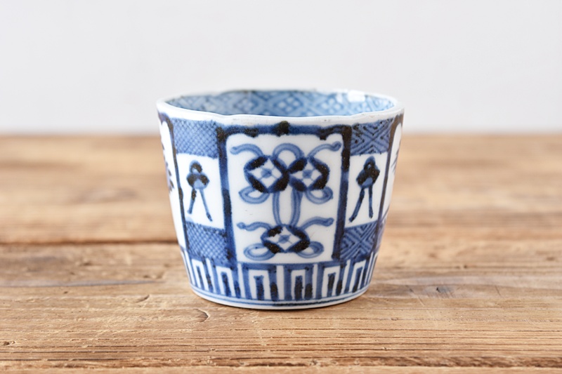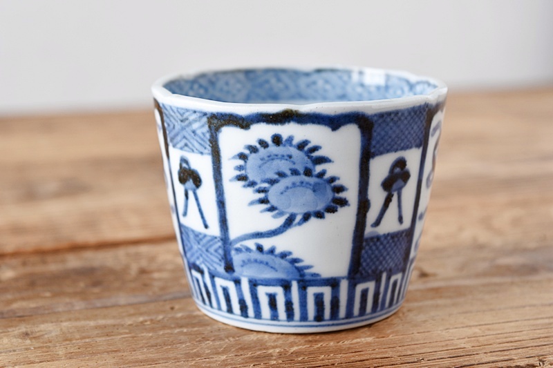 古伊万里 染付 七宝熨斗菊花 蕎麦猪口 江戸中期