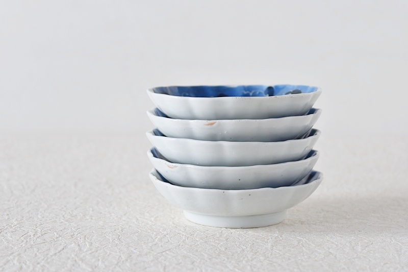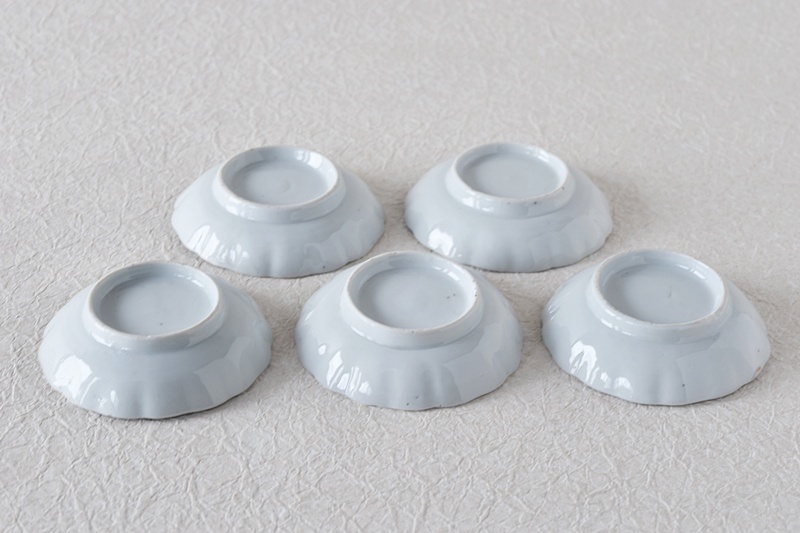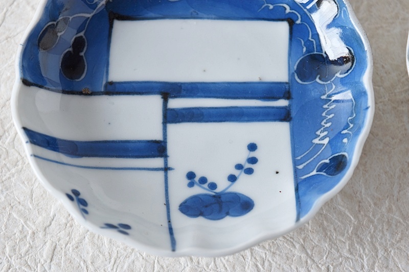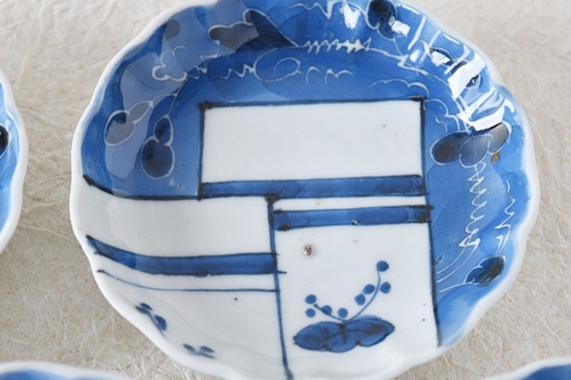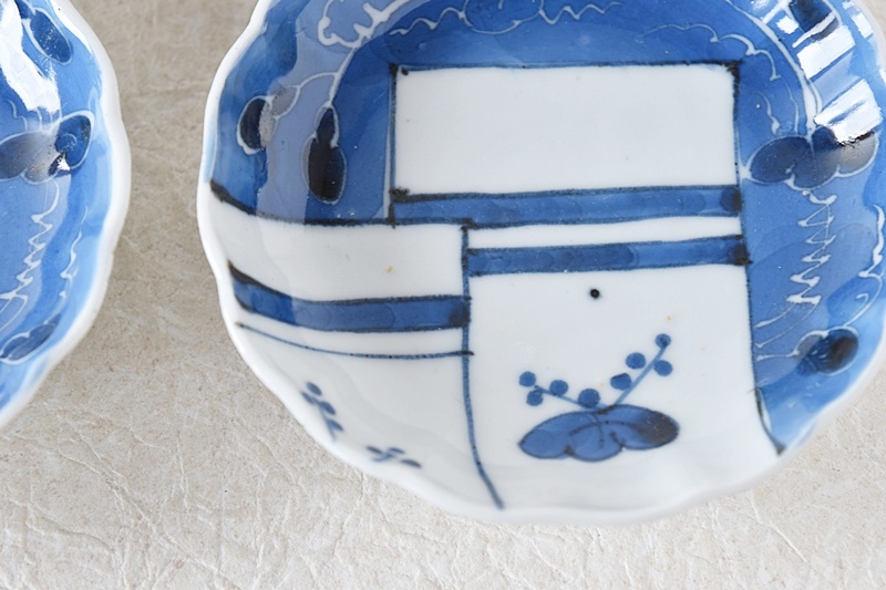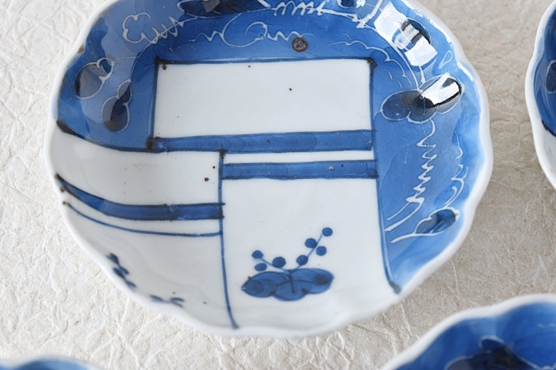 古伊万里 染付 桐紋と千成瓢箪 墨はじき 豆皿 豊臣秀吉 5客セット