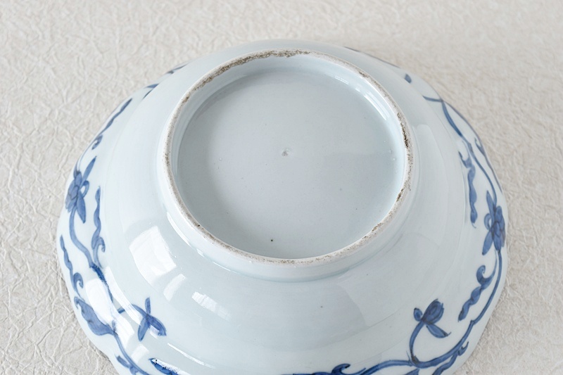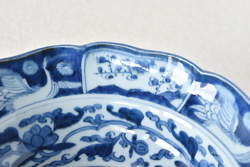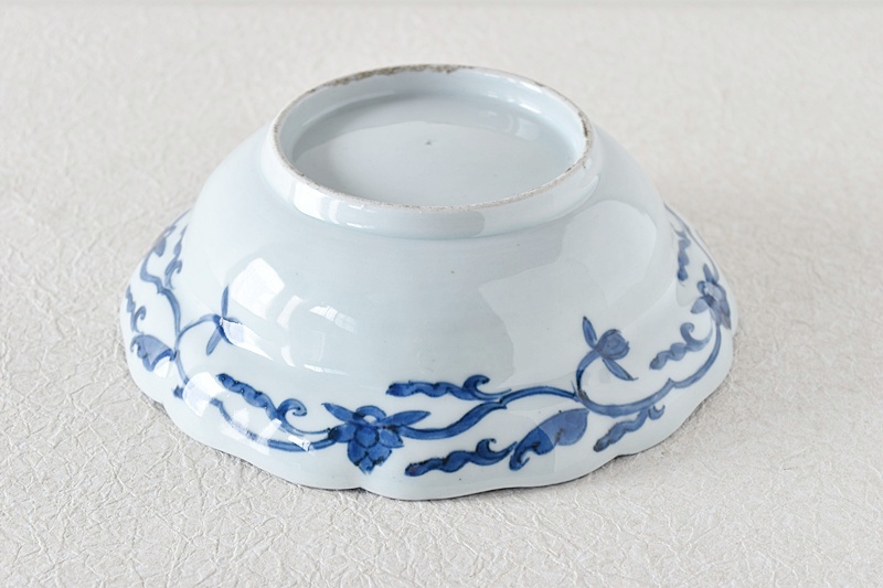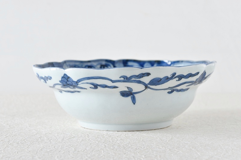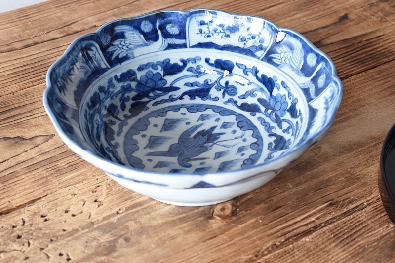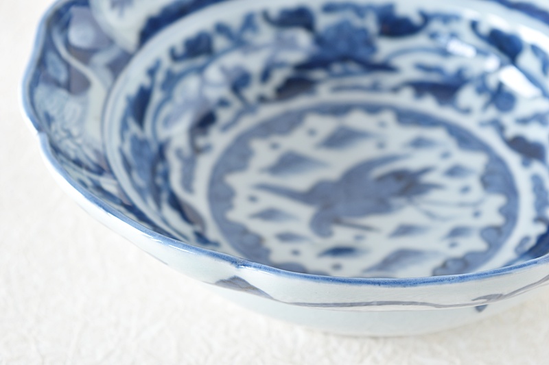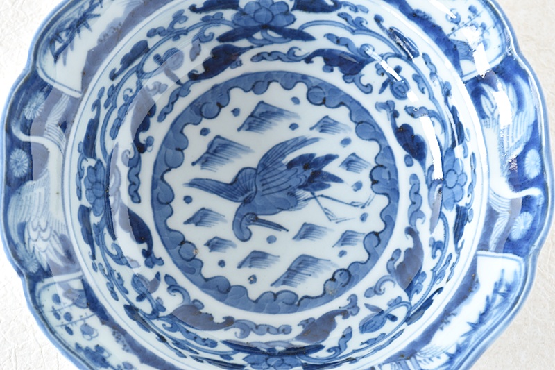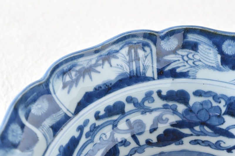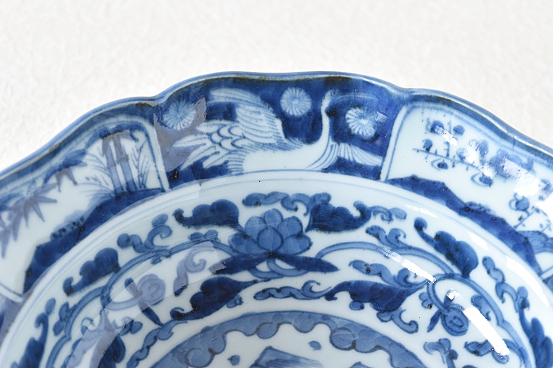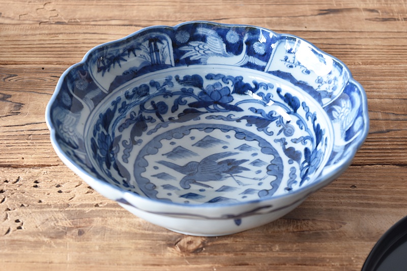 古伊万里 染付 波に鶴 花唐草 松竹梅 輪花型鉢