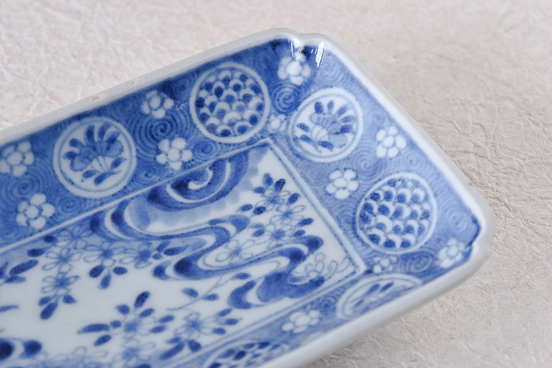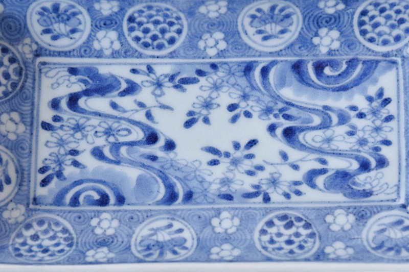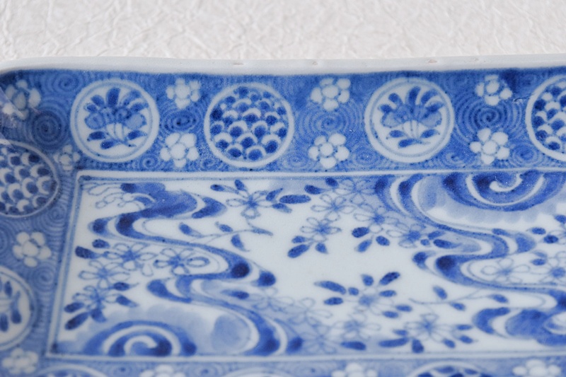 古伊万里 染付 流水に桜散らし 丸文梅花 渦福 長皿 その一Sold Out