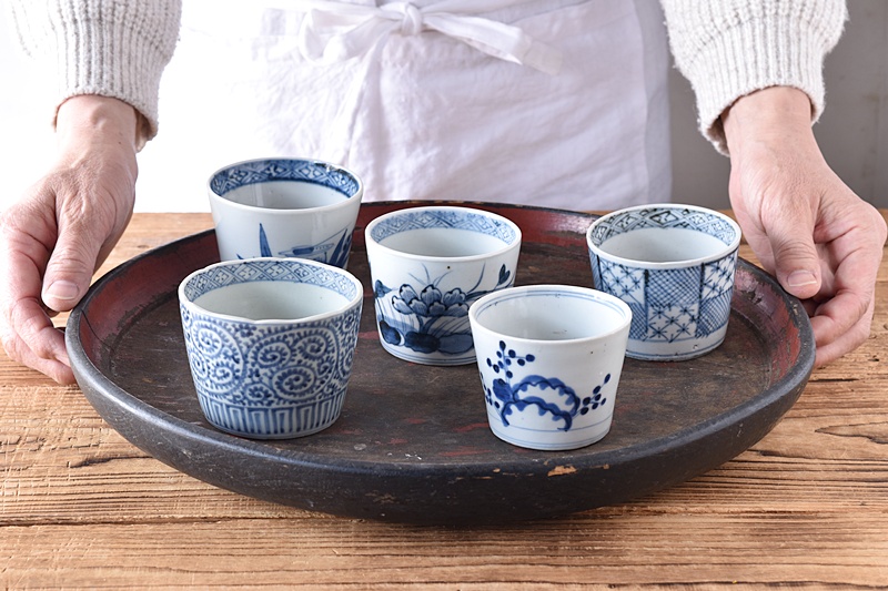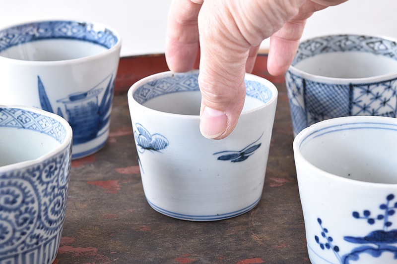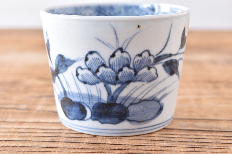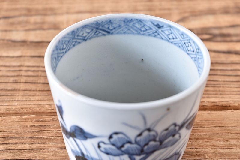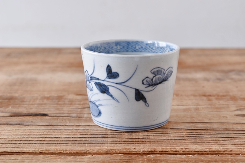 古伊万里 染付 牡丹蝶々 蕎麦猪口