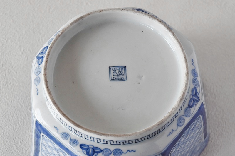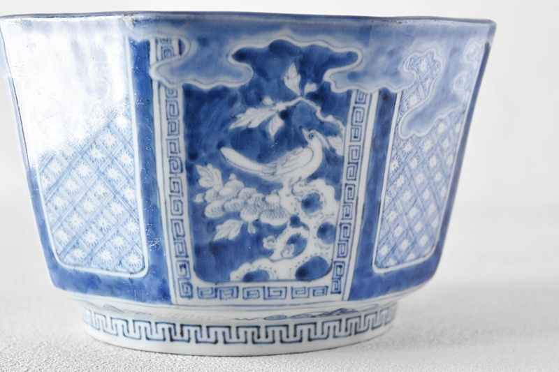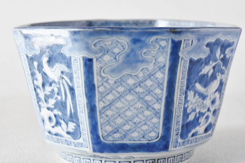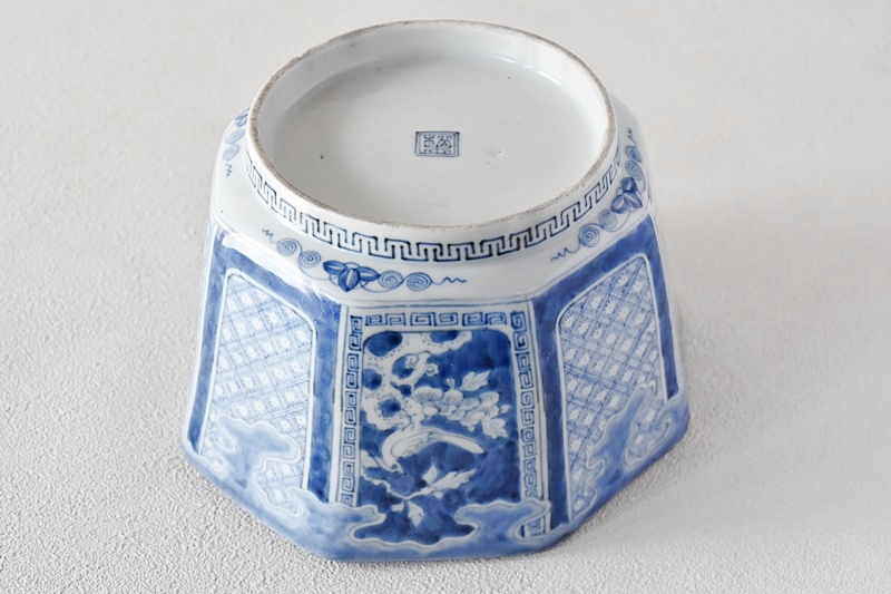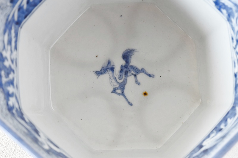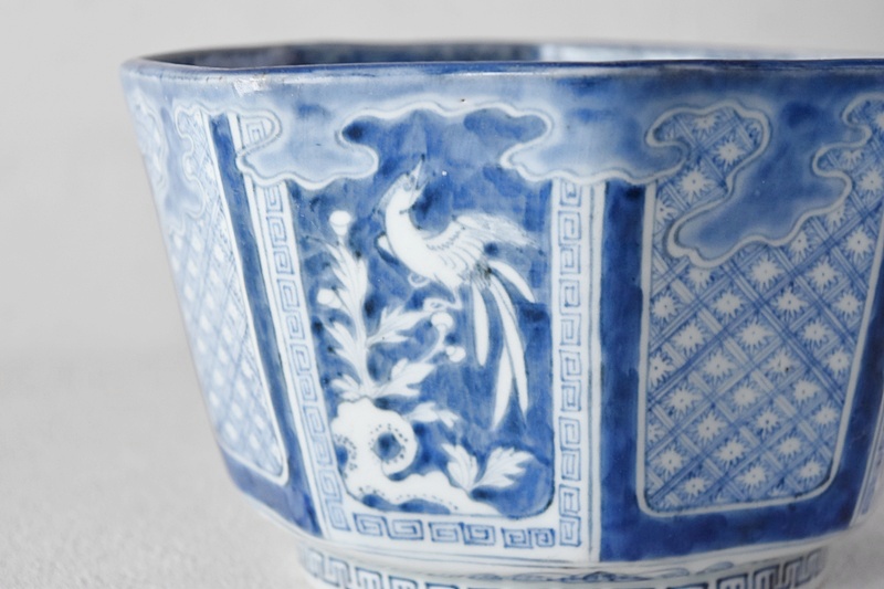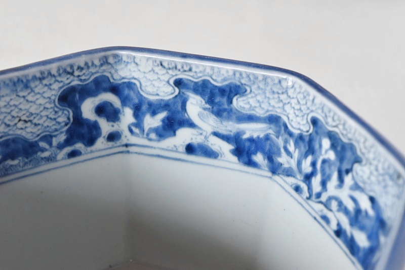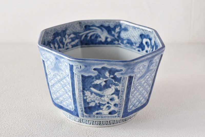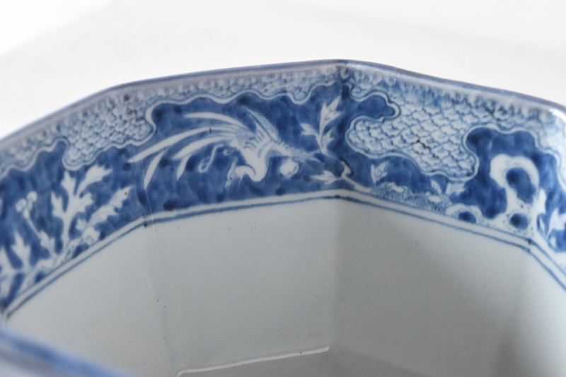 古伊万里 染付 白抜き 花鳥麒麟 八角鉢Sold Out