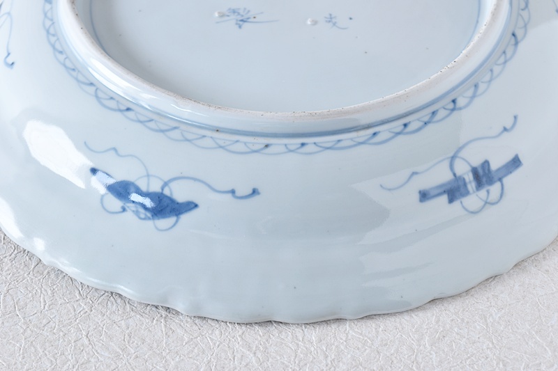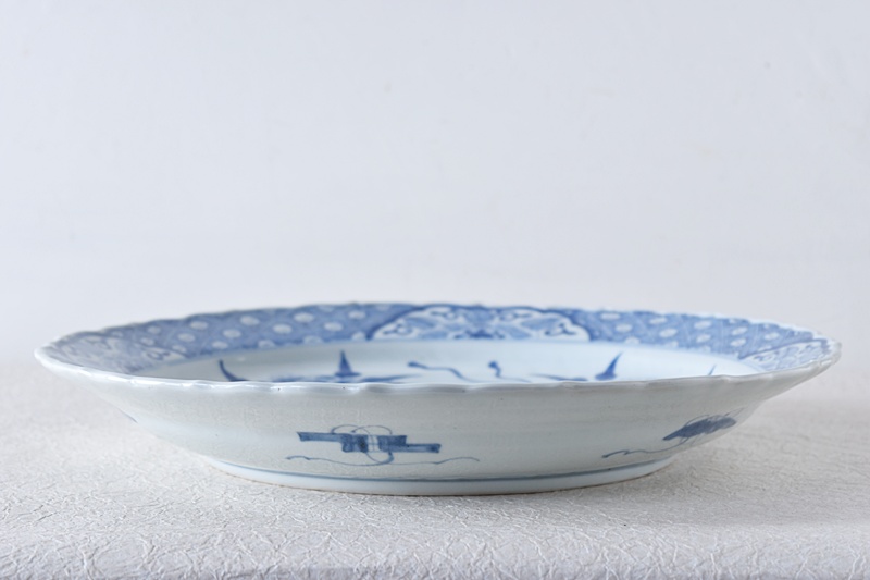 古伊万里 染付 線描き 牡丹尽くし 太明成化年製文 輪花型 大皿