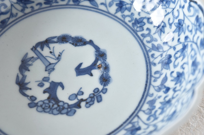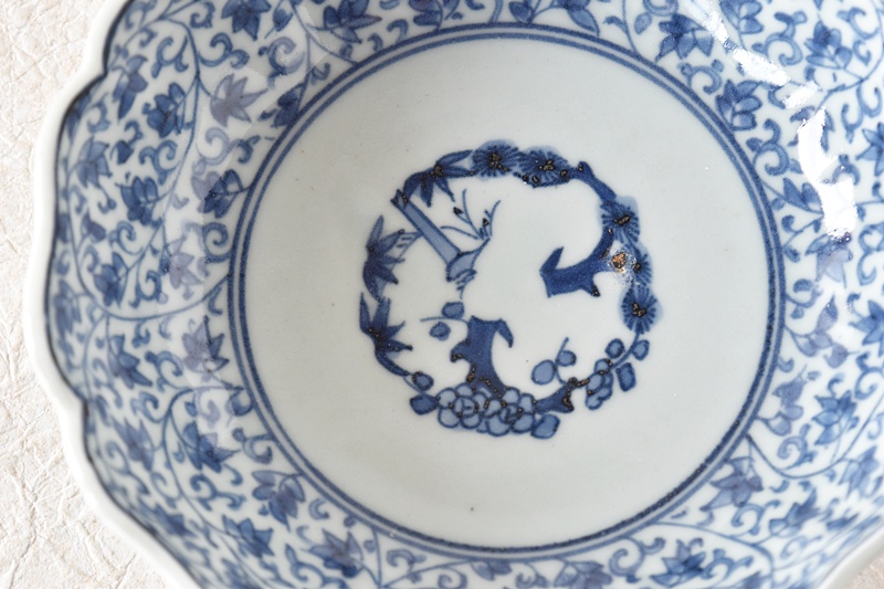 古伊万里 染付 花唐草 萩唐草 松竹梅 成化年製文 輪花型膾皿Sold Out