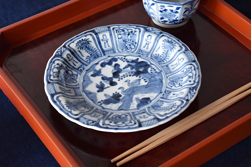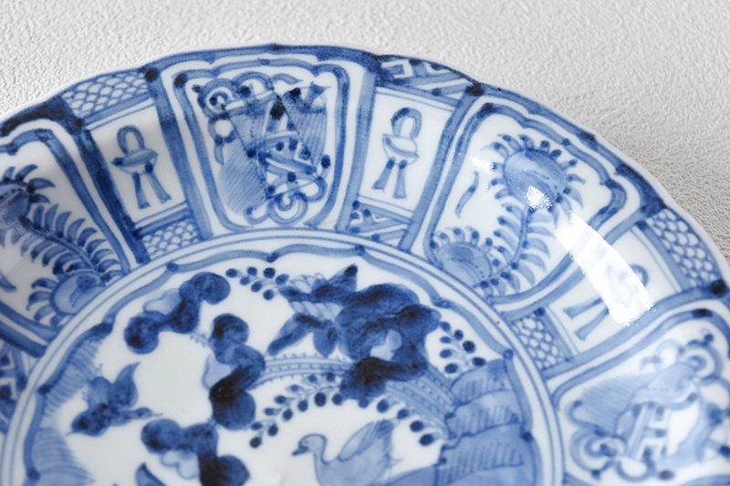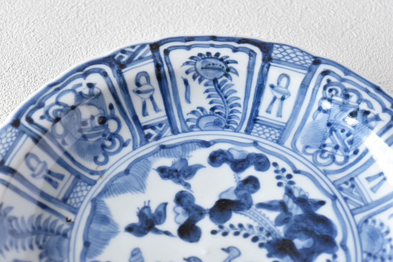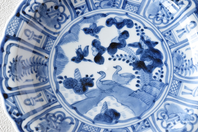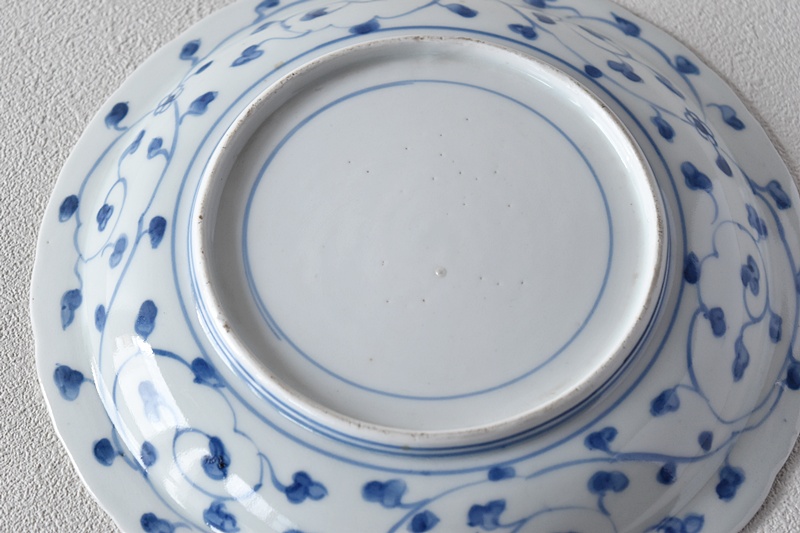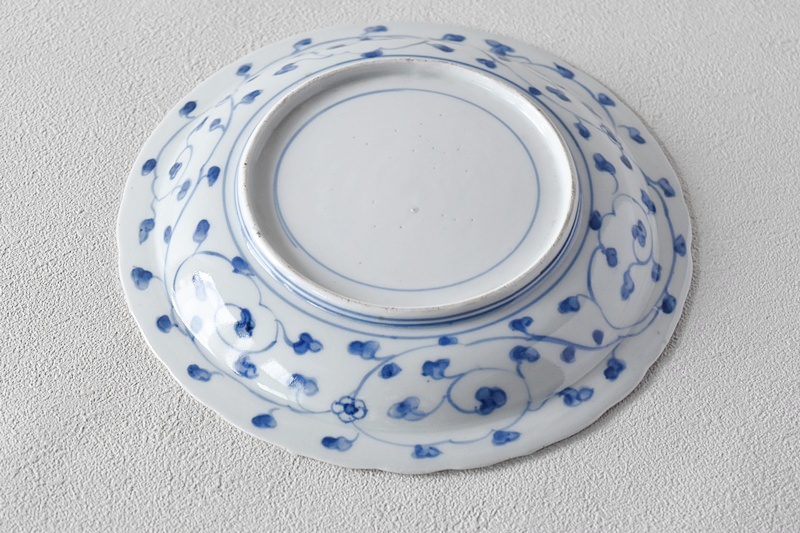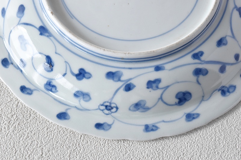 古伊万里 染付 花鳥芙蓉手 輪花型 七寸皿Sold Out