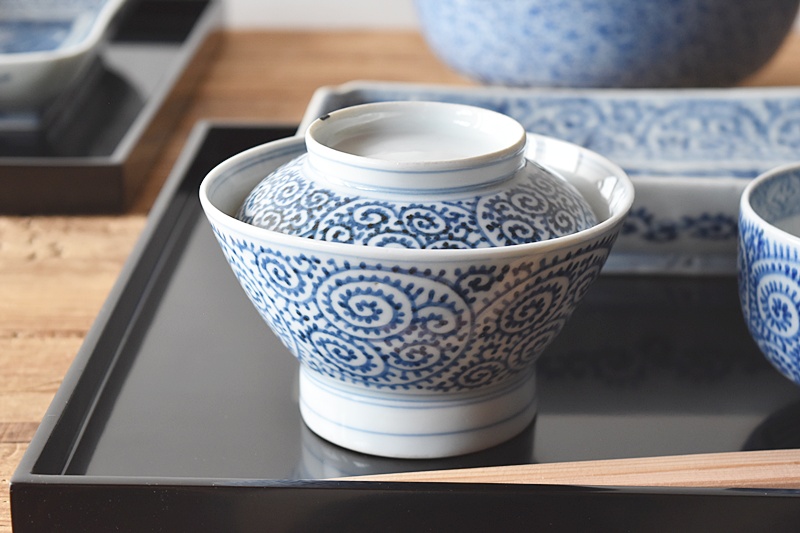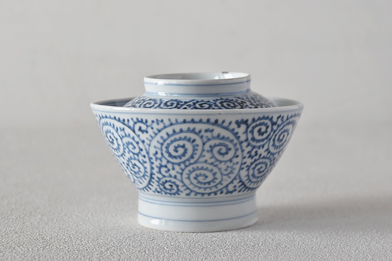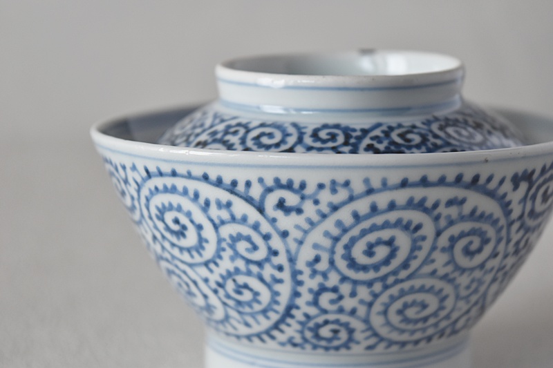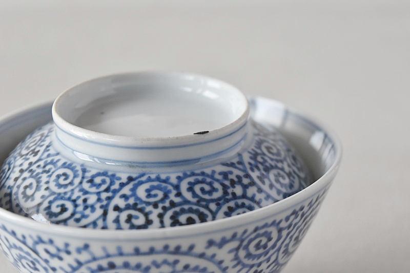 古伊万里 染付 蛸唐草 広東型 蓋付茶碗