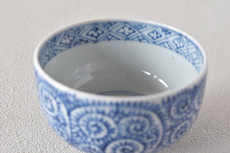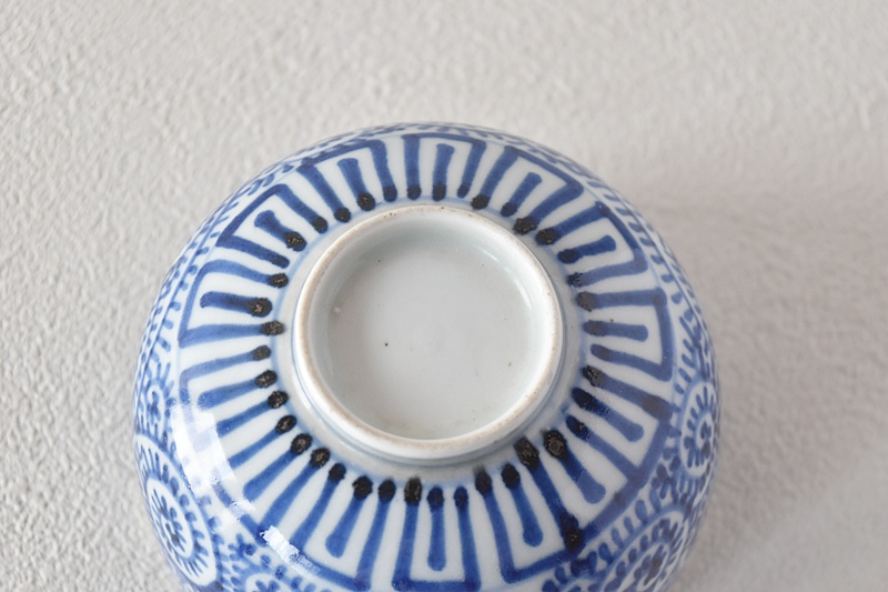 古伊万里 染付 蛸唐草 輪茶碗 コロンとまん丸輪茶碗です。 向付にもお楽しみいただけます。 直径9 高さ5.5㎝くらい 江戸後期 制作時のふりもの、くっつき、擦れ汚れはご了承ください。 ※ほか詳細画像は下からご覧ください 定価 ¥3,000(税込) 販売価格 ¥3,300(税込) 数量 在庫数:1 この商品についてのお問い合わせ 詳細画像