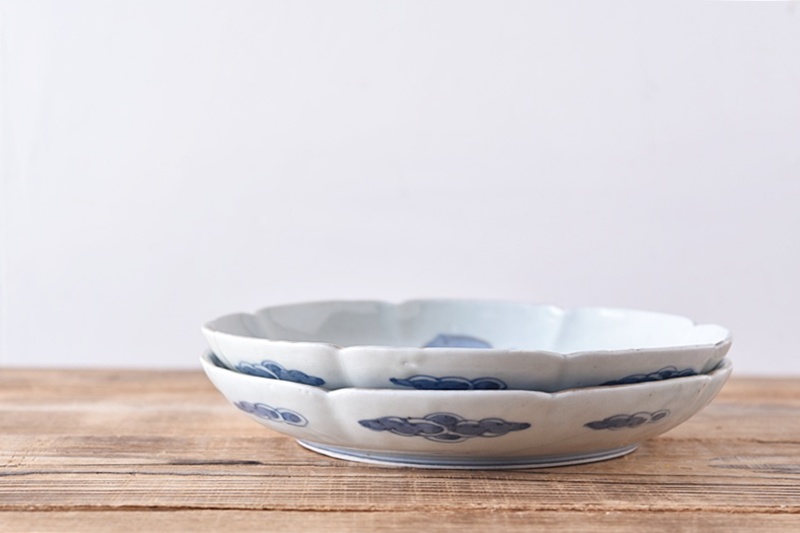 古伊万里 染錦 岩と牡丹 冨貴長春 花形 6.5寸皿 2客セットSold Out