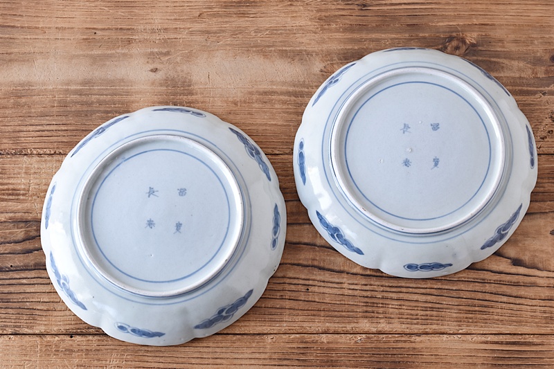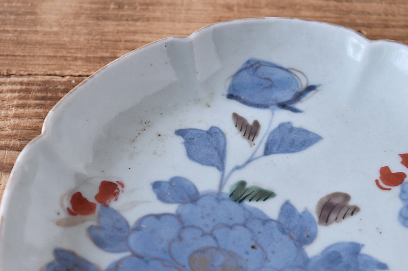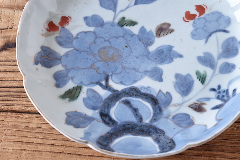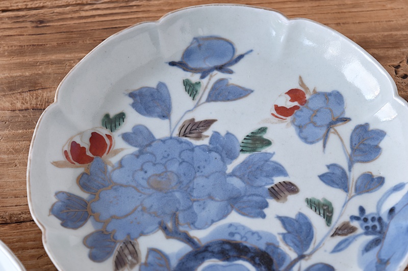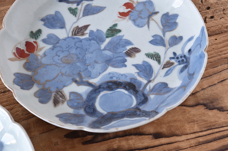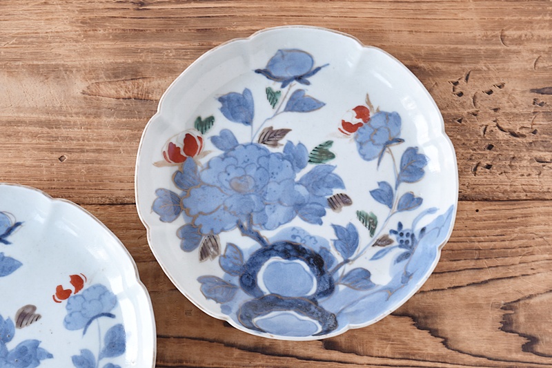 古伊万里 染錦 岩と牡丹 冨貴長春 花形 6.5寸皿 2客セットSold Out