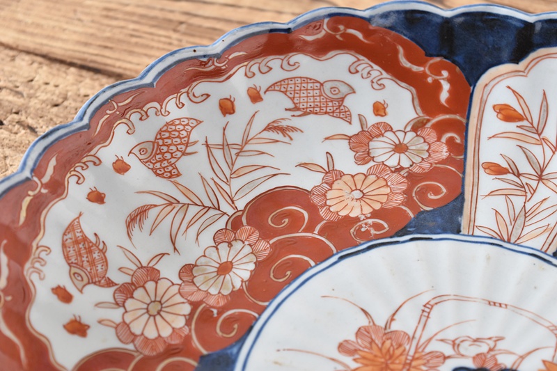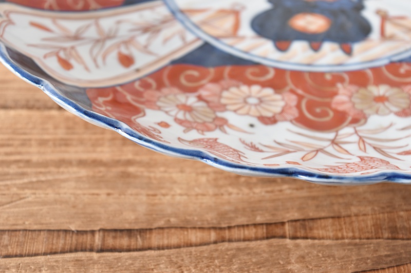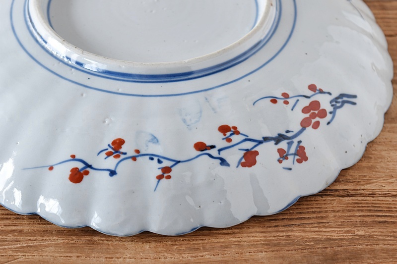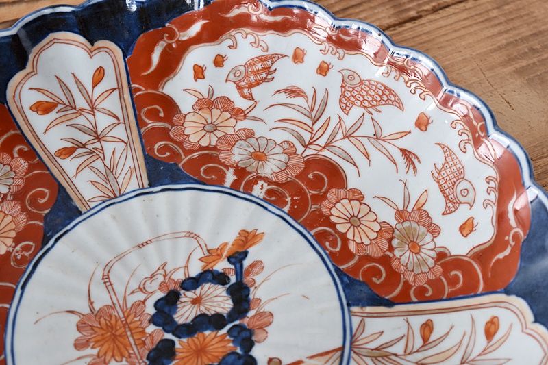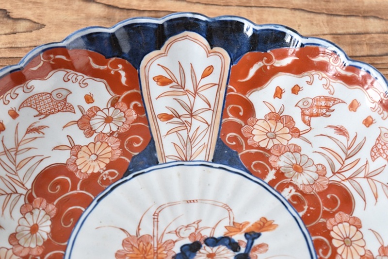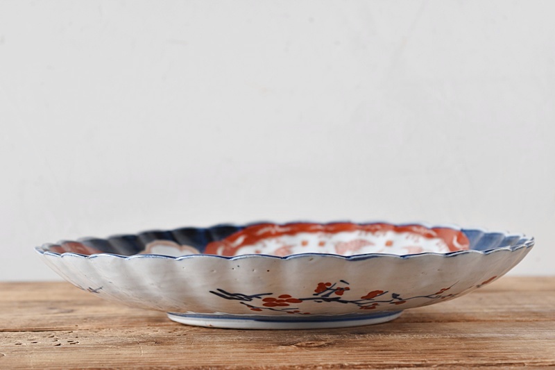 古伊万里 色絵 花籠に菊 菊花千鳥 輪花型 菊型 尺皿Sold Out