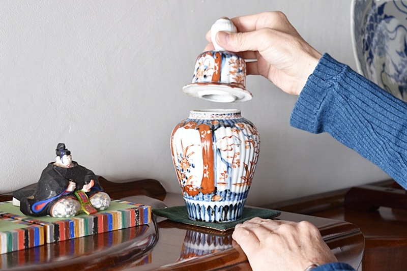 古伊万里 色絵 草花模様 小さめ沈香壺 花器 花瓶Sold Out