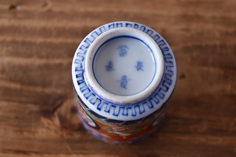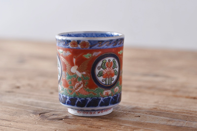 古伊万里 色絵 赤絵 立鶴花丸文 冨貴長春 のぞき猪口