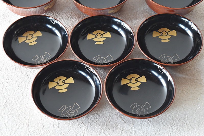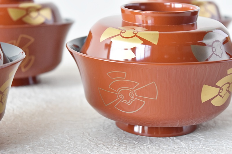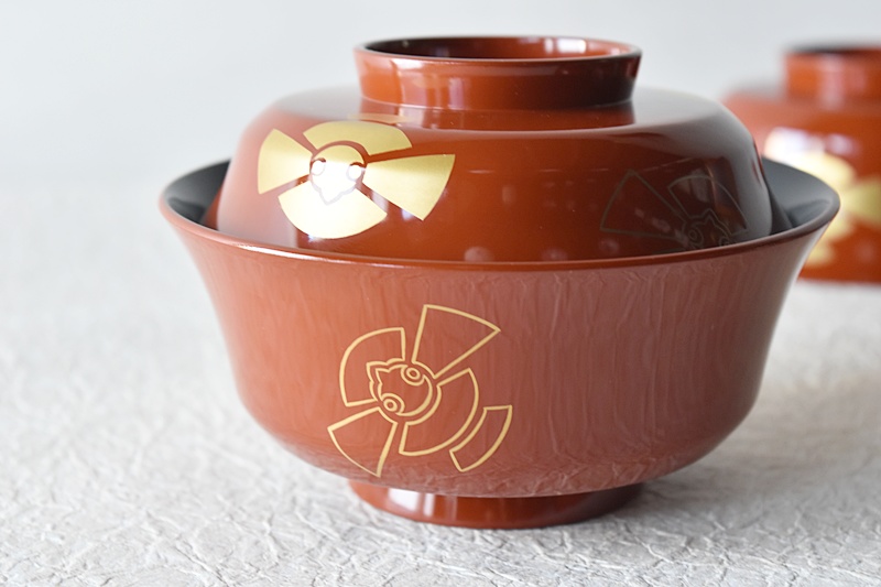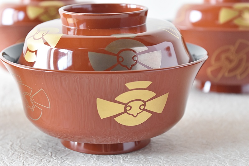 天然木製漆塗 時代蒔絵 福良雀 見返し図有 朱塗 煮物椀 雑煮椀Sold Out