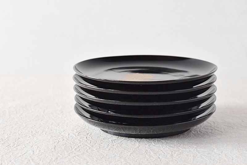 天然木製漆塗 時代蒔絵 菊図変わり金銀蒔絵 菓子皿 5客セット その四Sold Out
