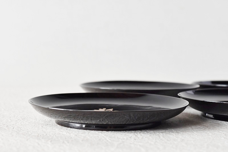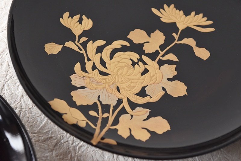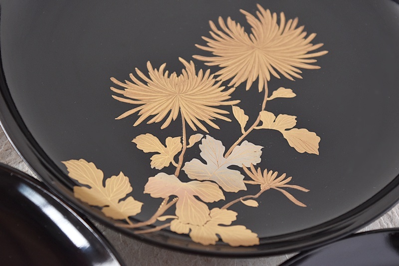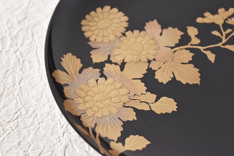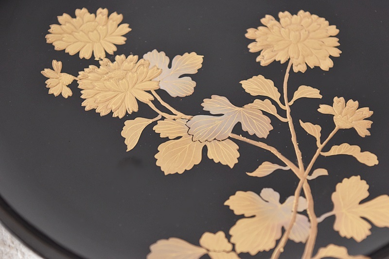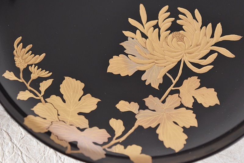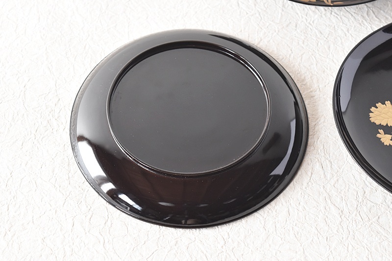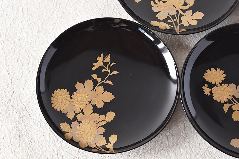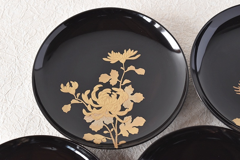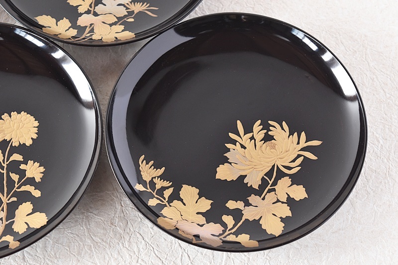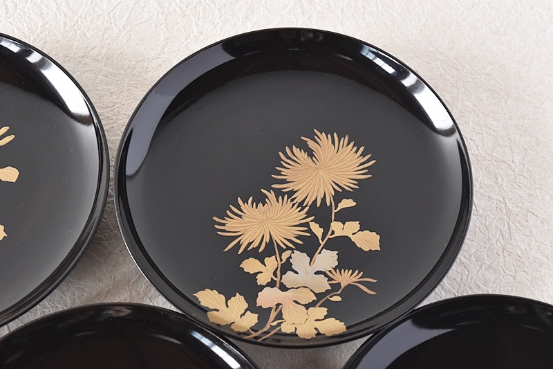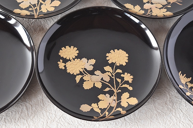 天然木製漆塗 時代蒔絵 菊図変わり金銀蒔絵 菓子皿 5客セット その一Sold Out